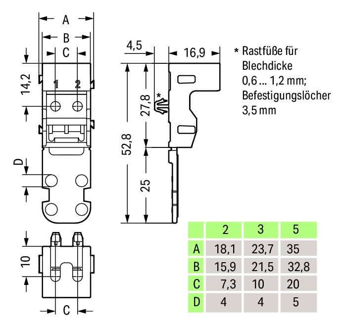 Bevestigingsadapter 2-draads klem 4mm² zwart 512 VVE=10 Wago