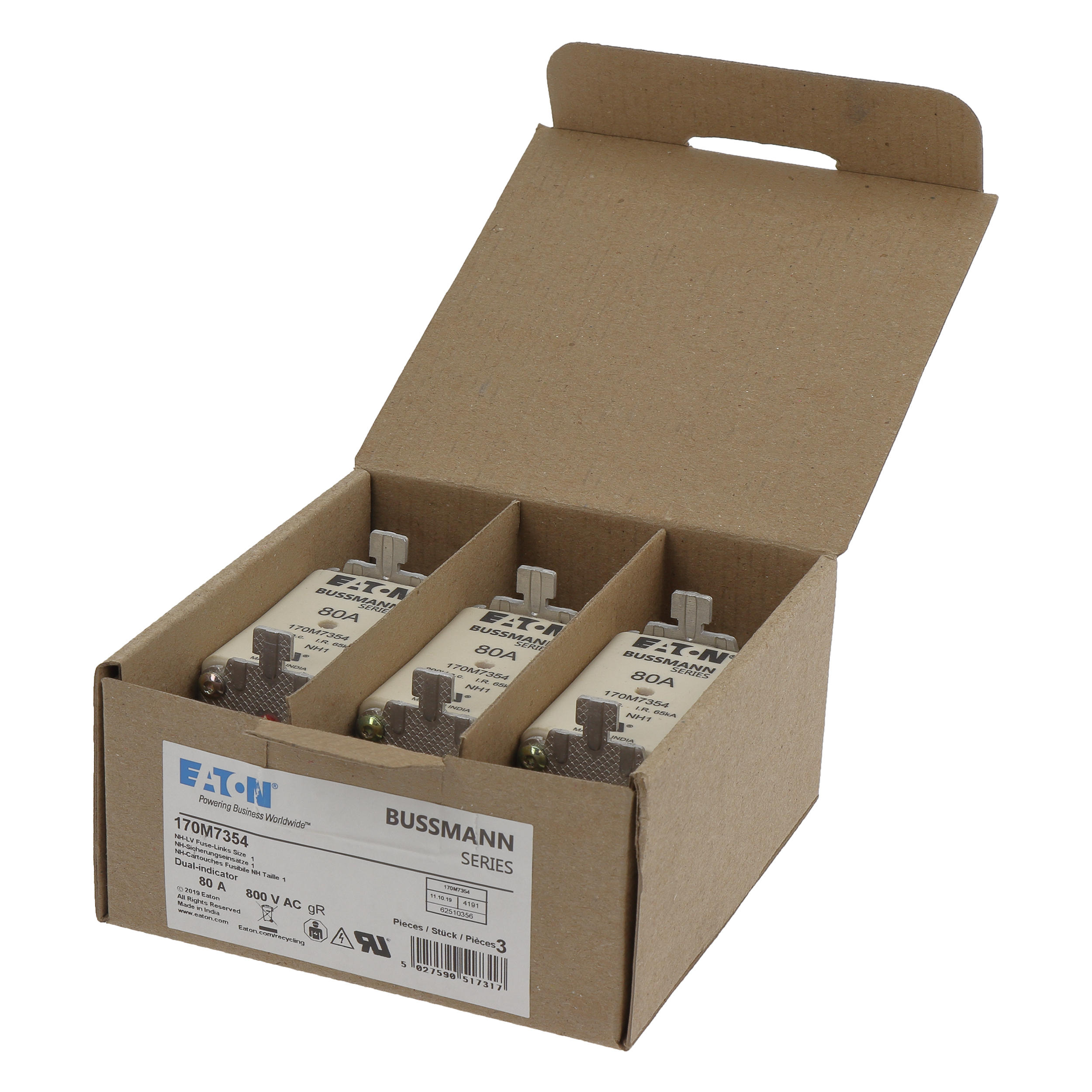 Zekeringelement FUSE 80A 800V HS AC gR SIZE 1 DUAL IND VVE=3 Eaton