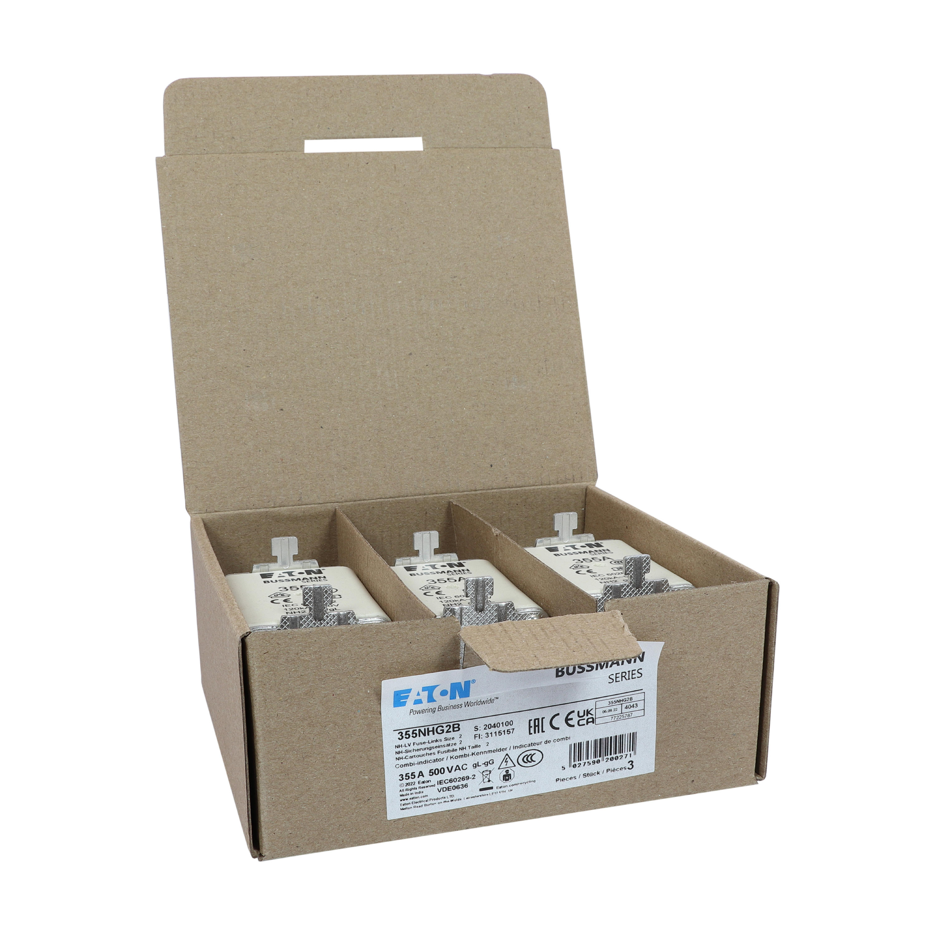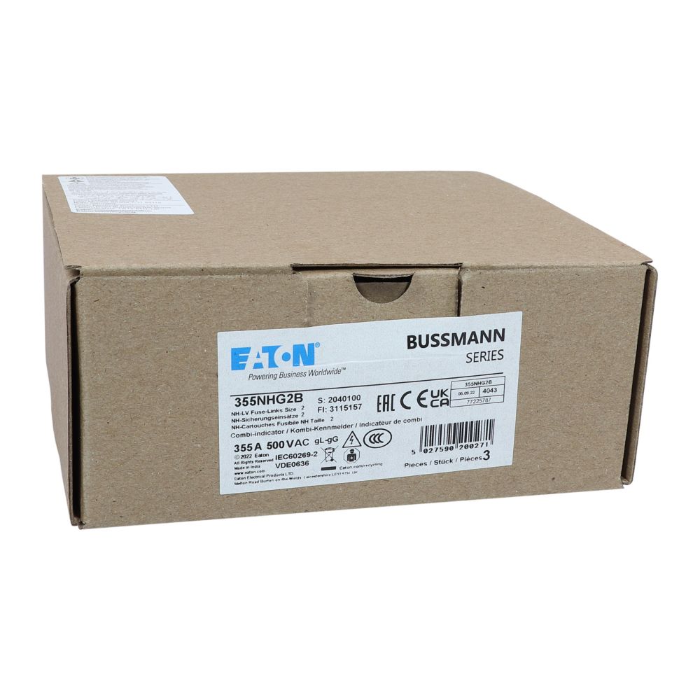 Zekering laagsp. 355A AC 500V NH2 gL/gG dubbele meld VVE=3 Eaton