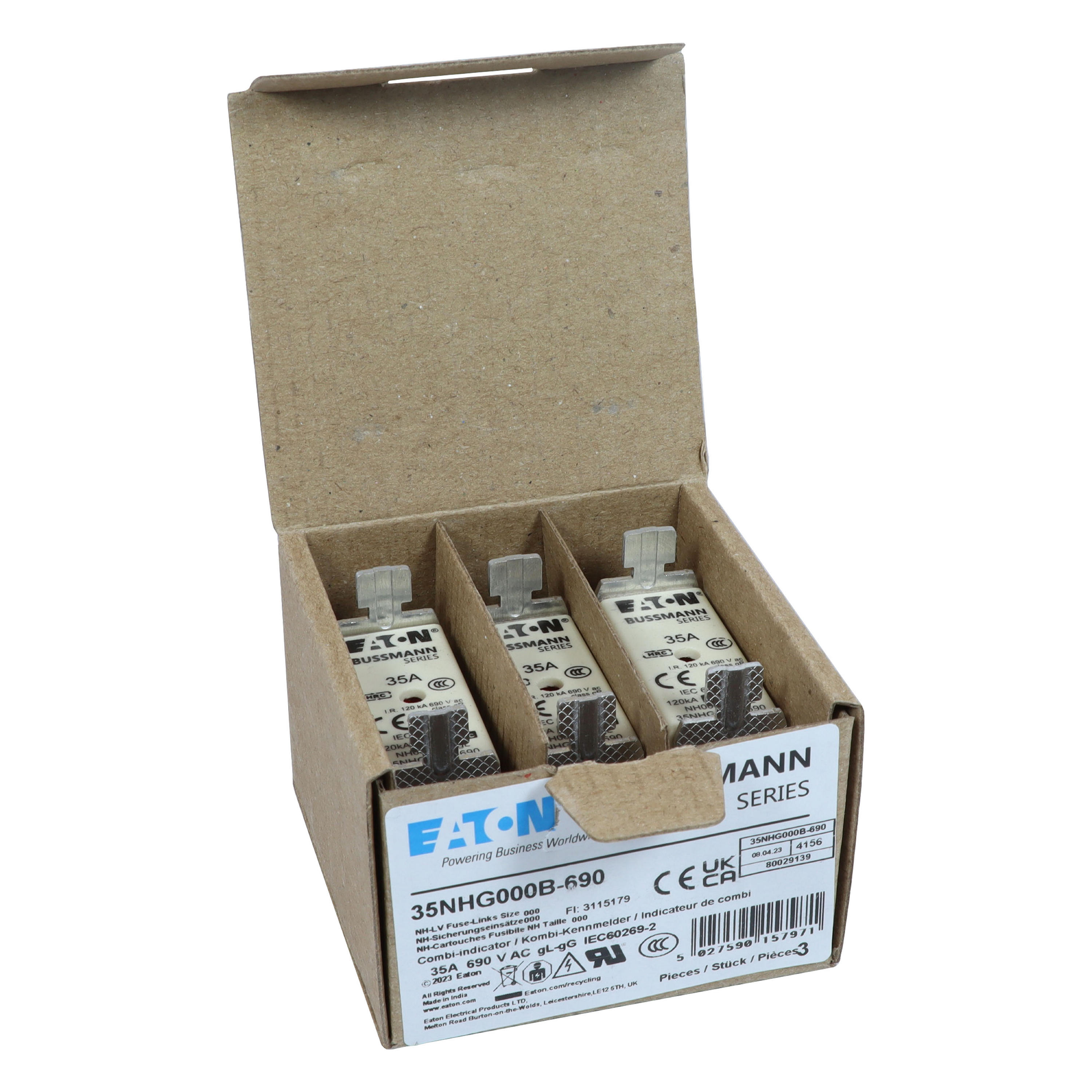 Zekering laagsp. 35A AC 690V NH000 gL/gG dubbele mel VVE=3 Eaton