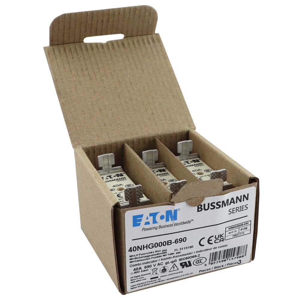 - Type: NH FUSE 40A 690V SIZE 000 GG MGL
