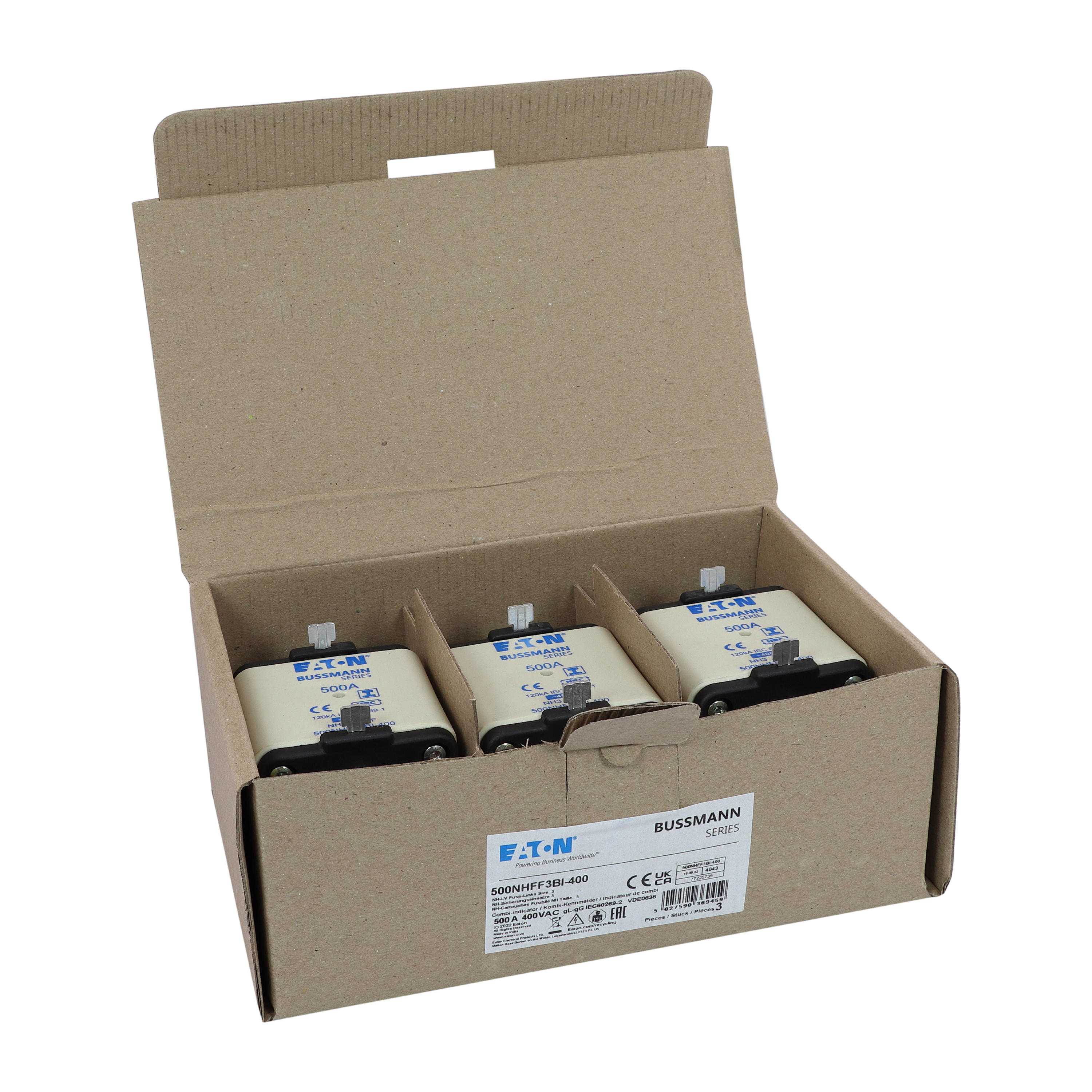 Zekering laagsp. 500A AC 400V NH3 gL/gG dubbele meld VVE=3 Eaton