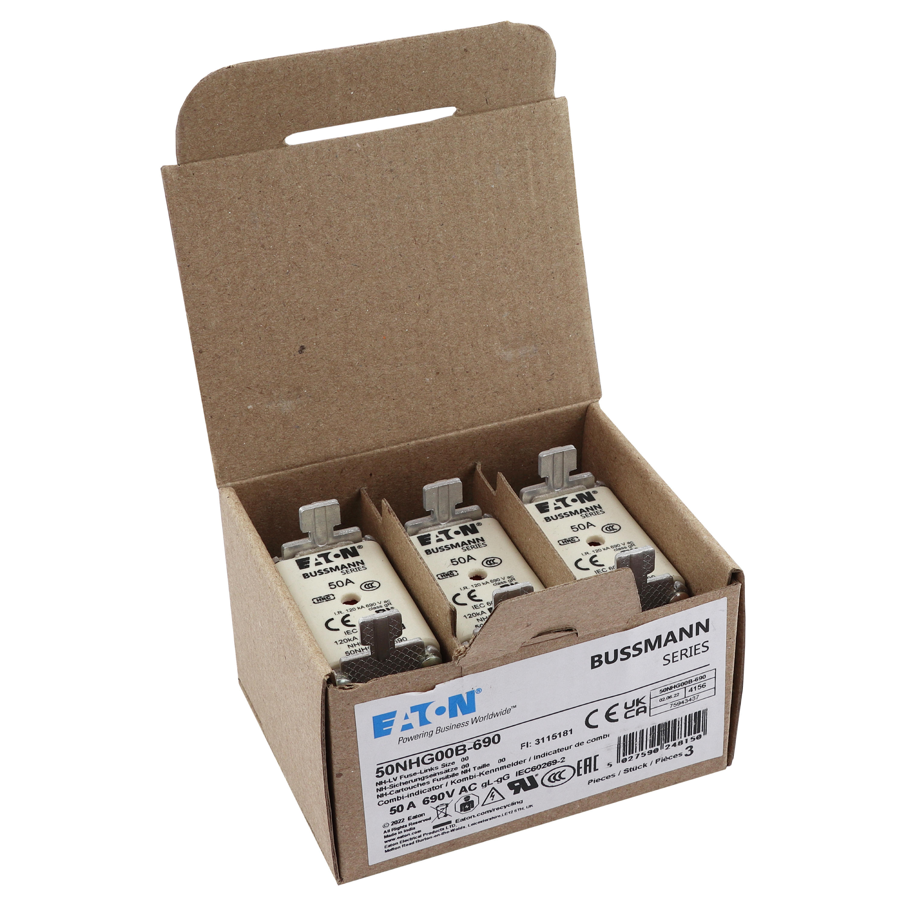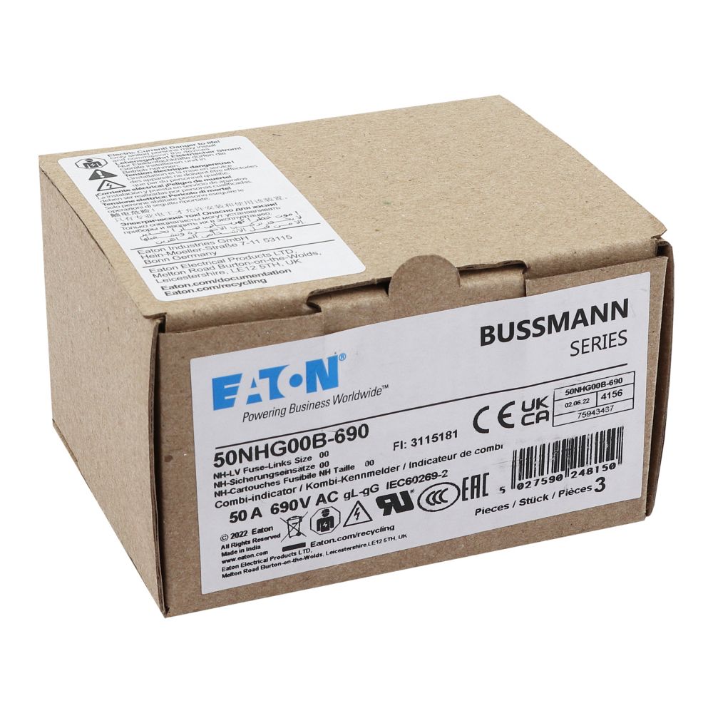 Zekering laagsp. 50A AC 690V NH00 gL/gG dubbele meld VVE=3 Eaton