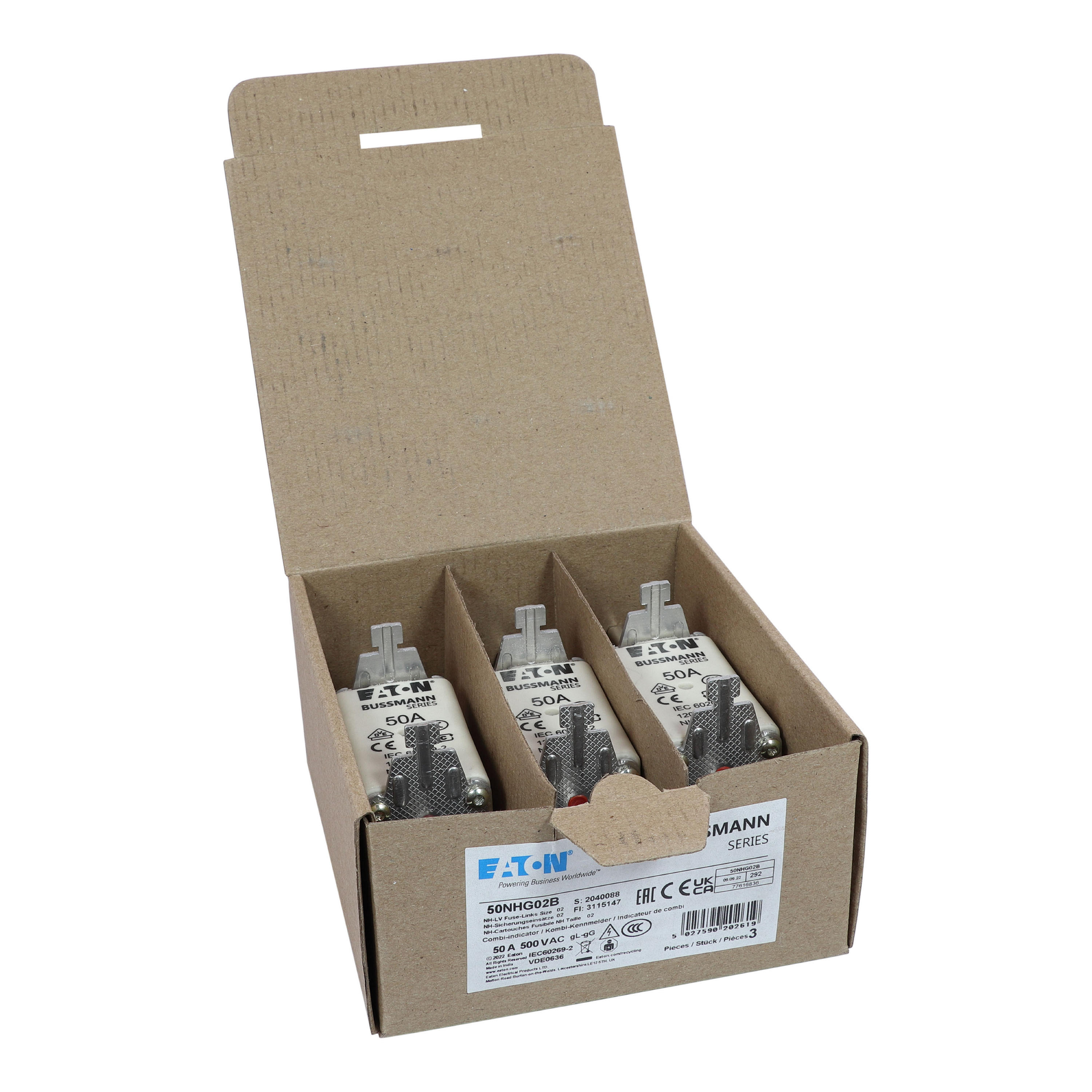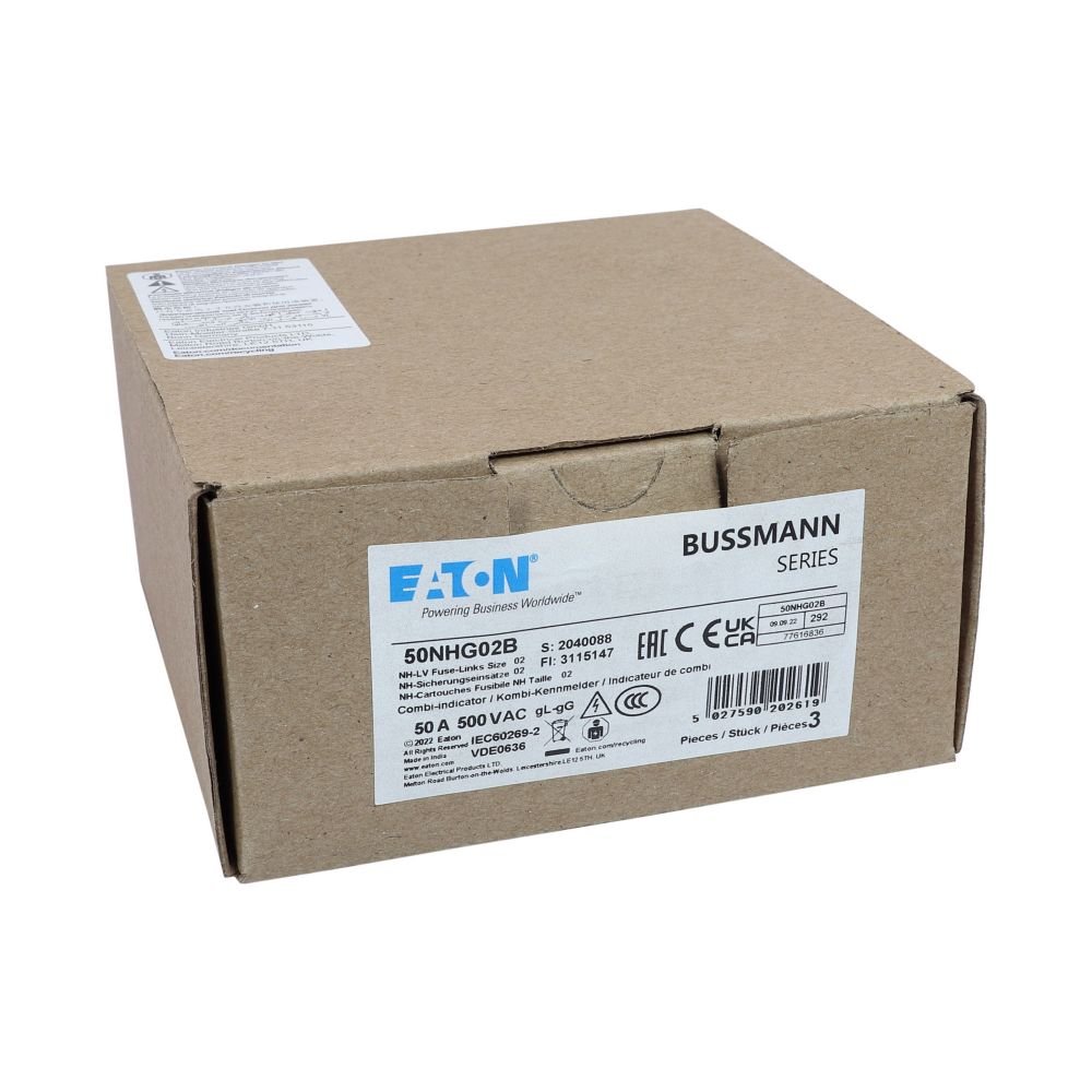 Zekering laagsp. 50A AC 500V NH02 gL/gG dubbele meld VVE=3 Eaton