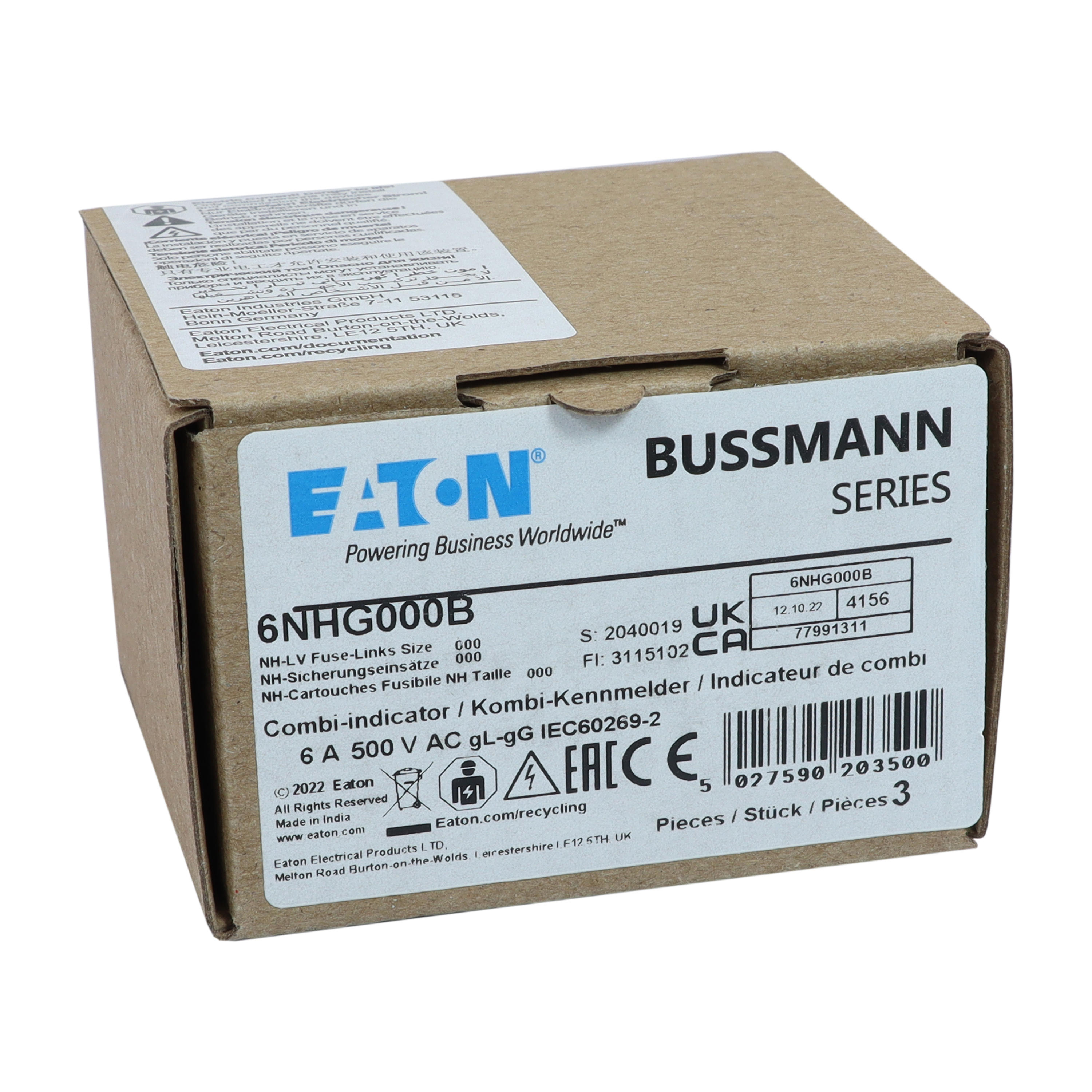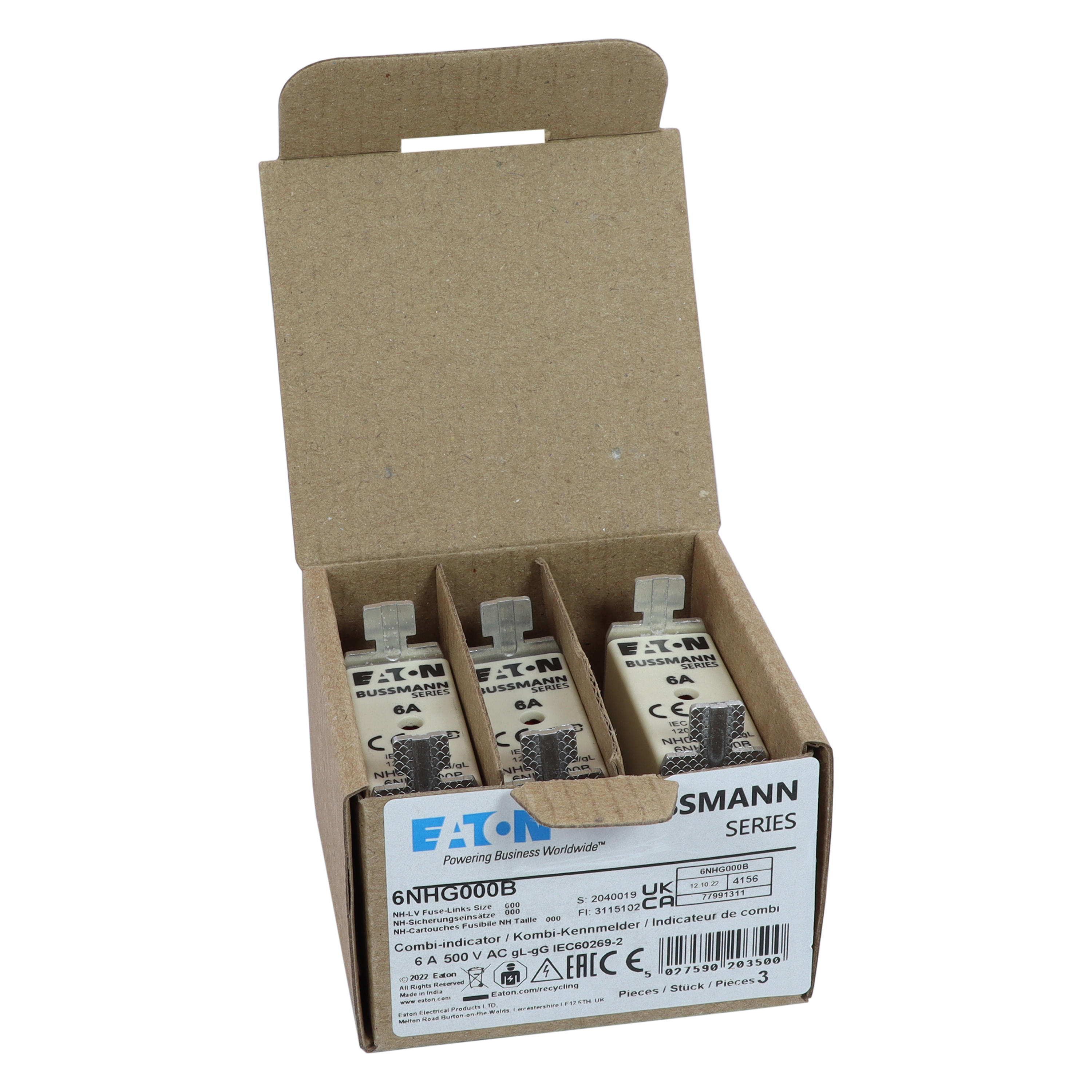 - Type: NH FUSE 6A 500V SIZE 000 GG MGL