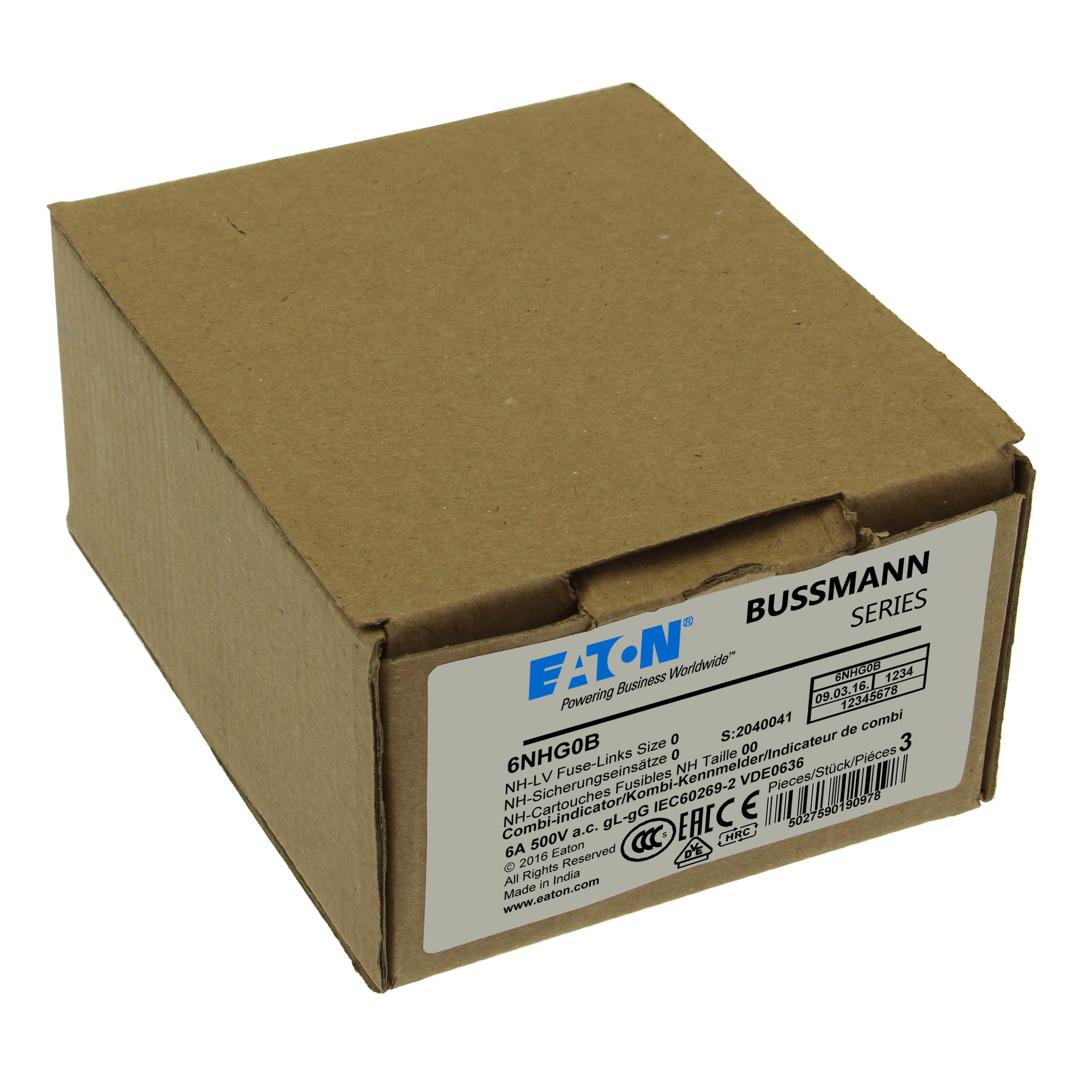 - Type: NH FUSE 6A 500V GG/GL SIZE 0