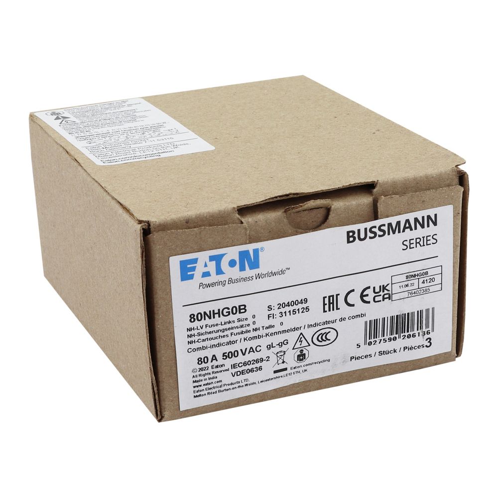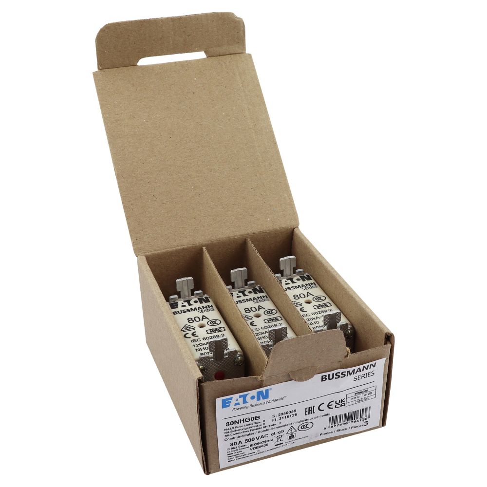 Zekering laagsp. 80A AC 500V NH0 gL/gG dubbele melde VVE=3 Eaton
