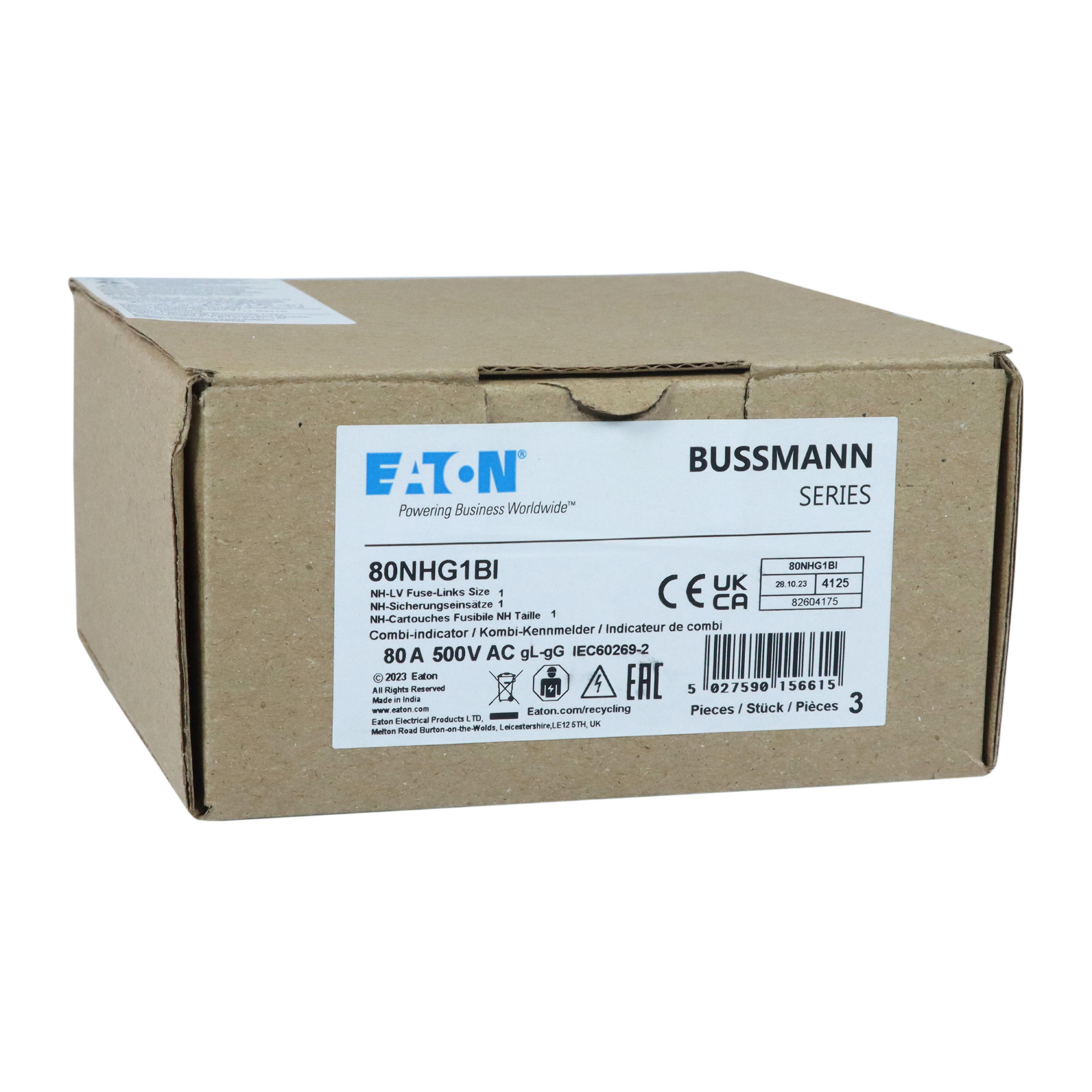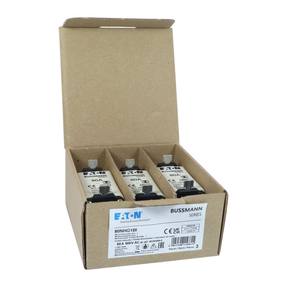 Zekering laagsp. 80A AC 500V NH1 gL/gG dubbele melde VVE=3 Eaton