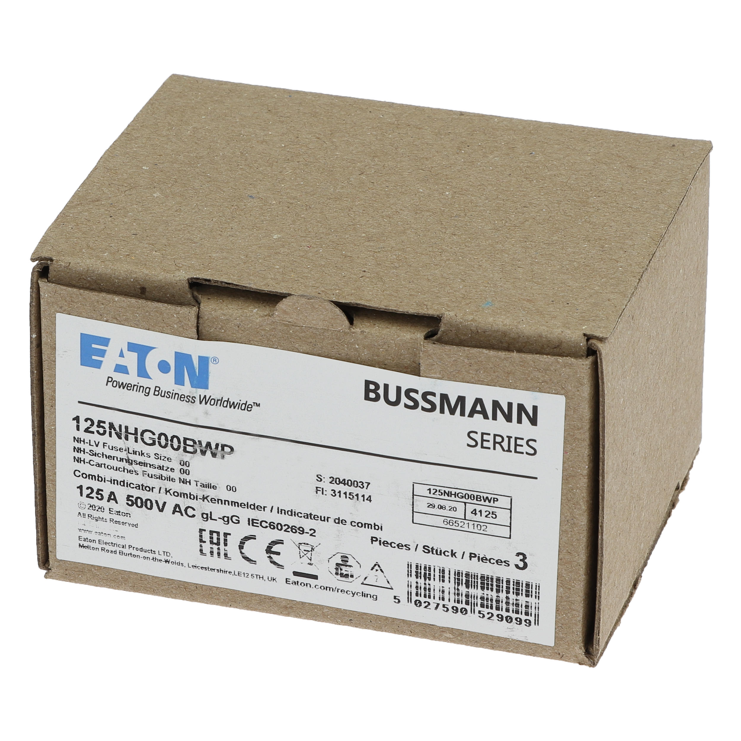 - Type: NH125A 500V gG SIZE 00 WEATHER RESI