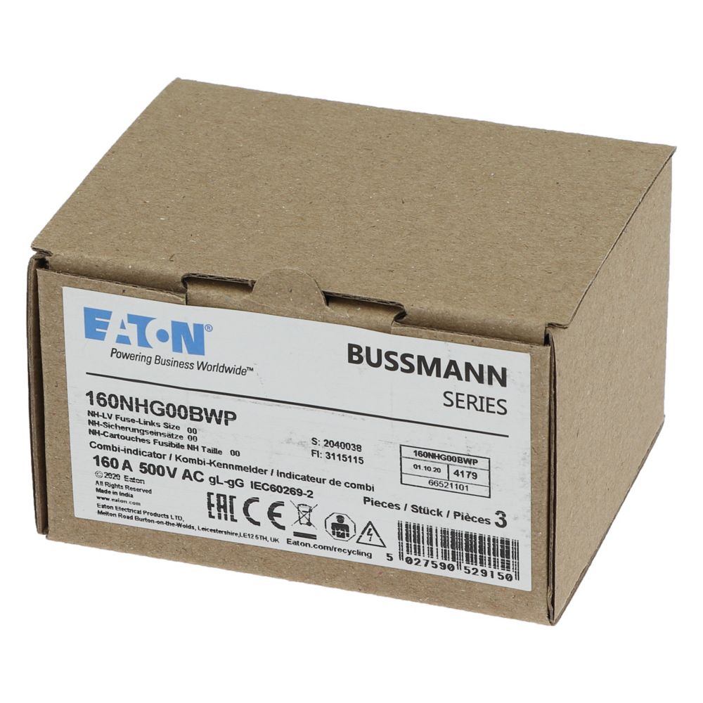 Zekeringelement NH160A 500V gG SIZE 00 WEATHER RES. VVE=3 Eaton