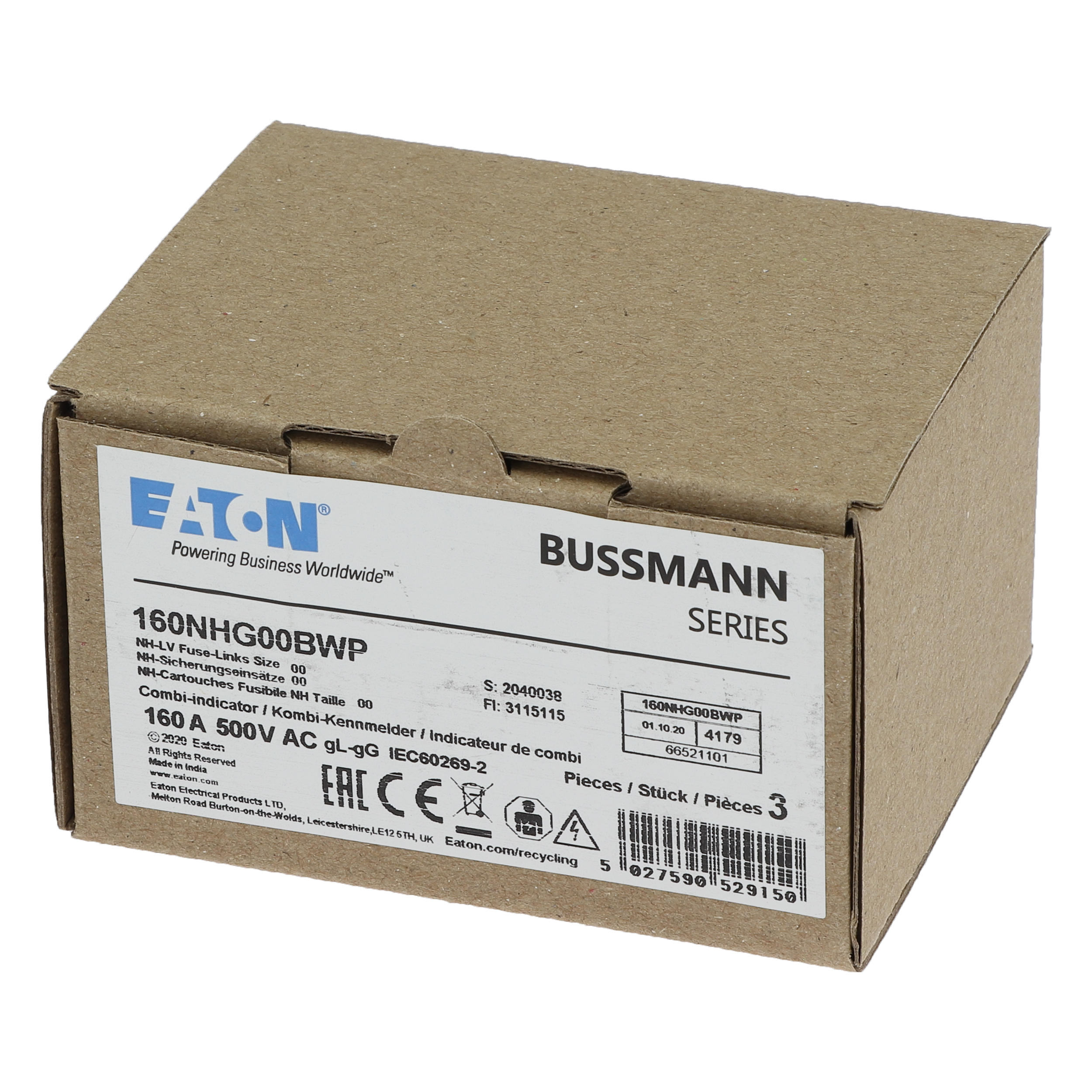 - Type: NH160A 500V gG SIZE 00 WEATHER RESI