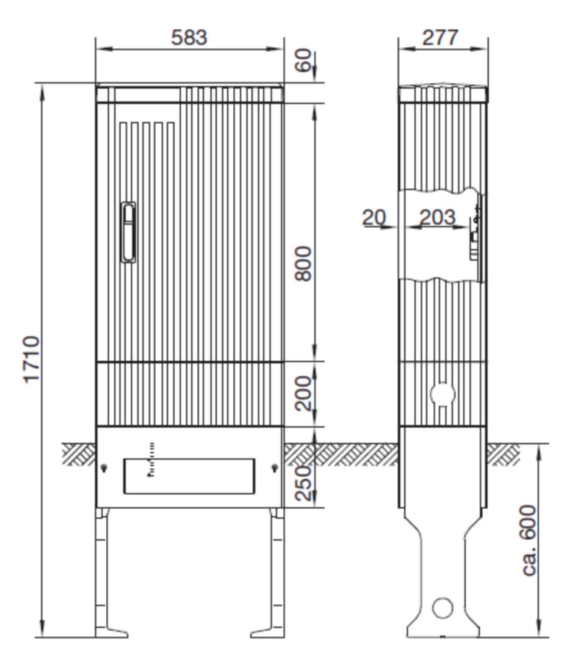 Polyester verdeelzuil gr 175 Univers N sokkel 1710x583x277mm Hager