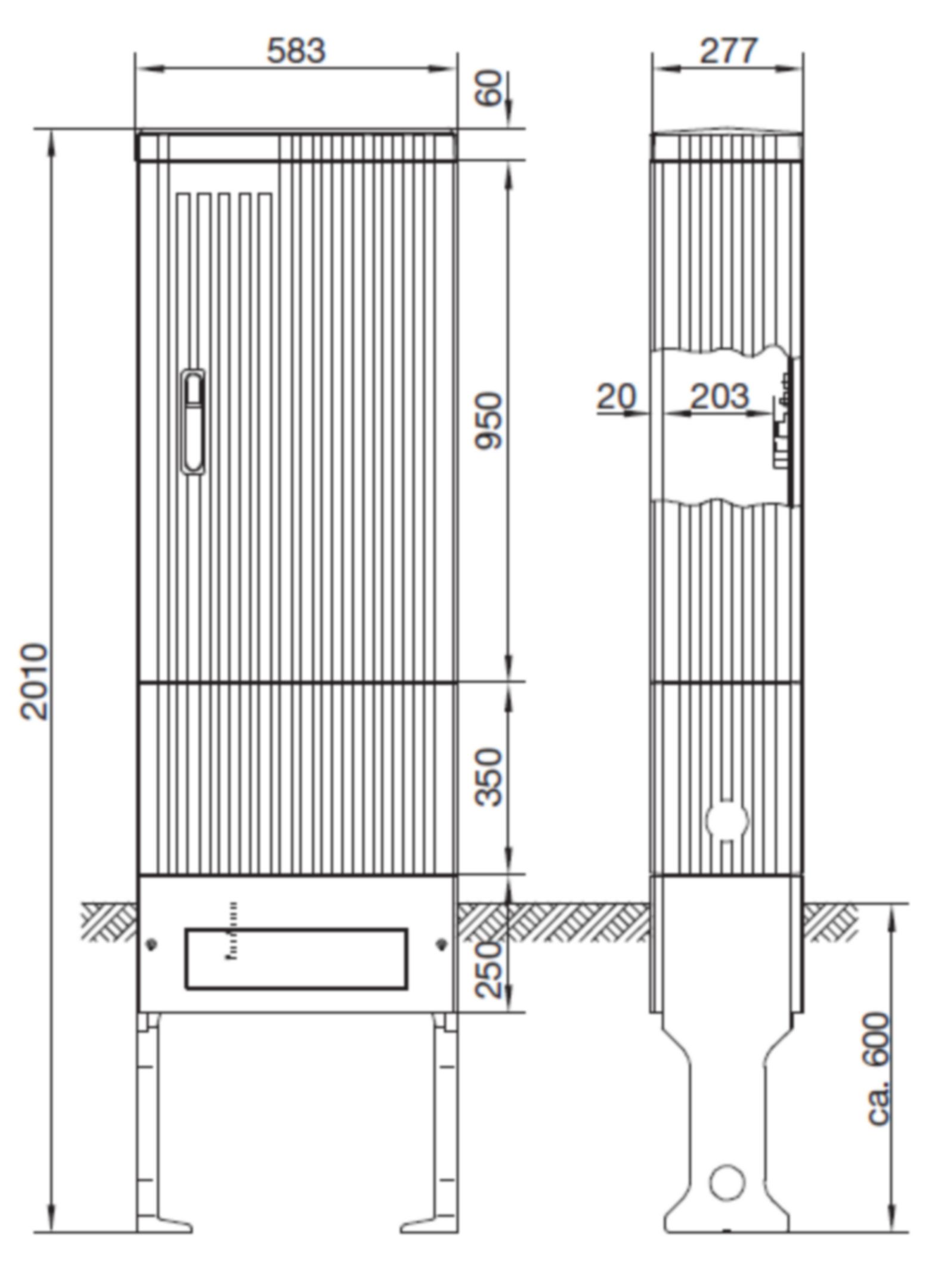 Polyester verdeelzuil gr 205 Univers N sokkel 2010x583x277mm Hager