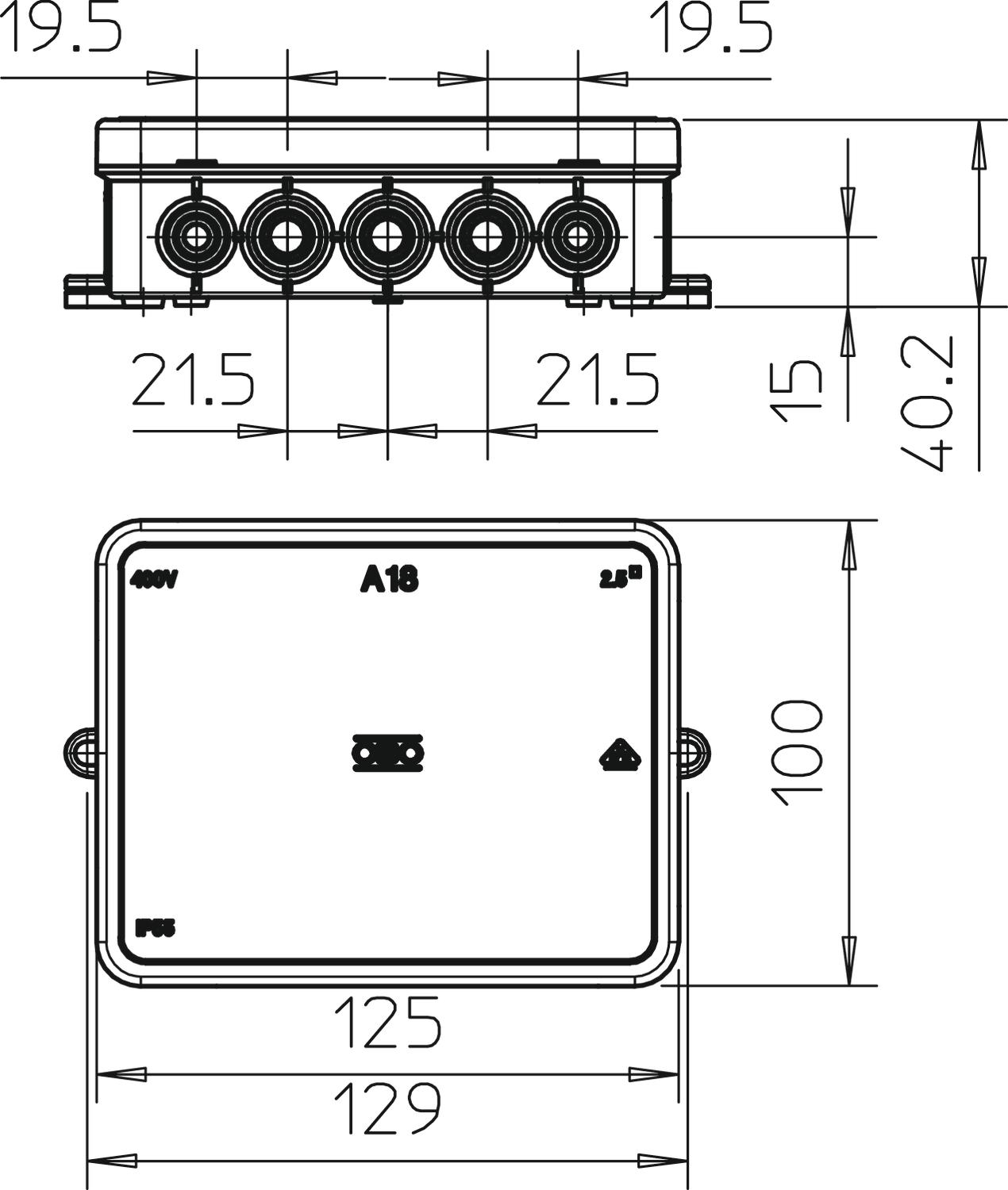 Kabeldoos 125x100x38 polyeth. rood VVE=10 OBO