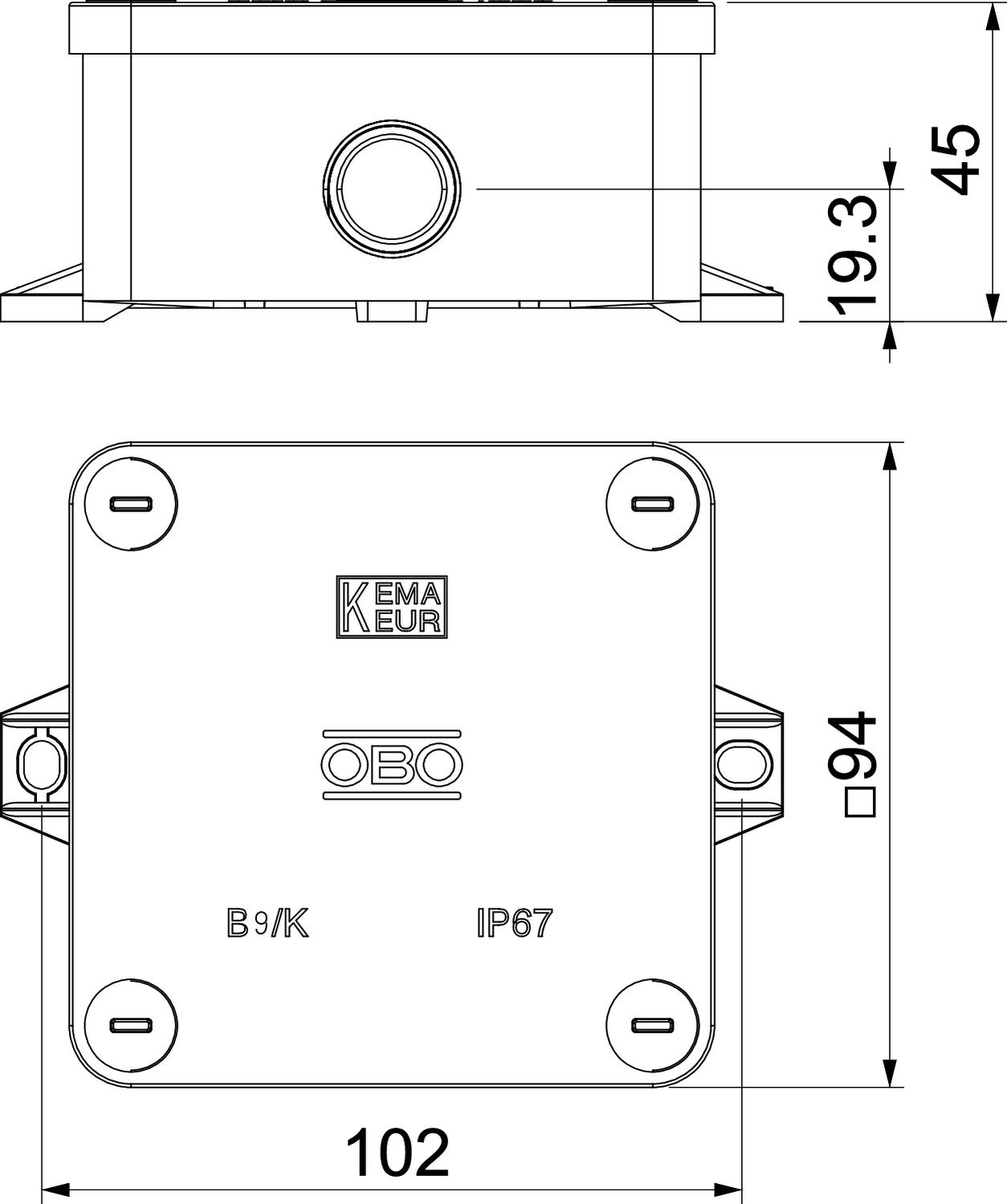 Kabeldoos B9KM 94x94x45mm duroplast incl. 3 wartels M20 lichtgrijs RAL7035 OBO