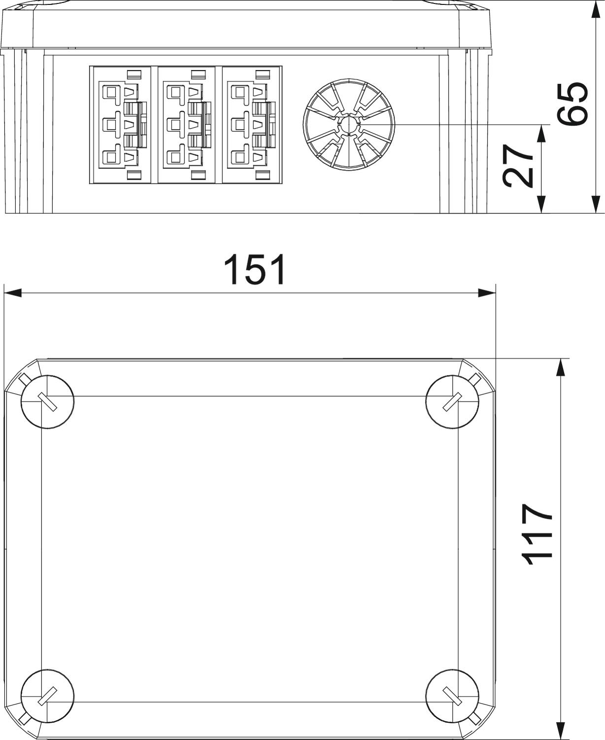 Kabeldoos wago aansluiting 3-p. 6x zwart 150x116x67 polypr. OBO