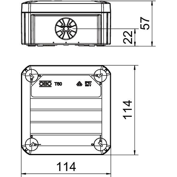 Kabeldoos trekontlastinginvoer 114x114x57 lichtgrijs VVE=5 OBO