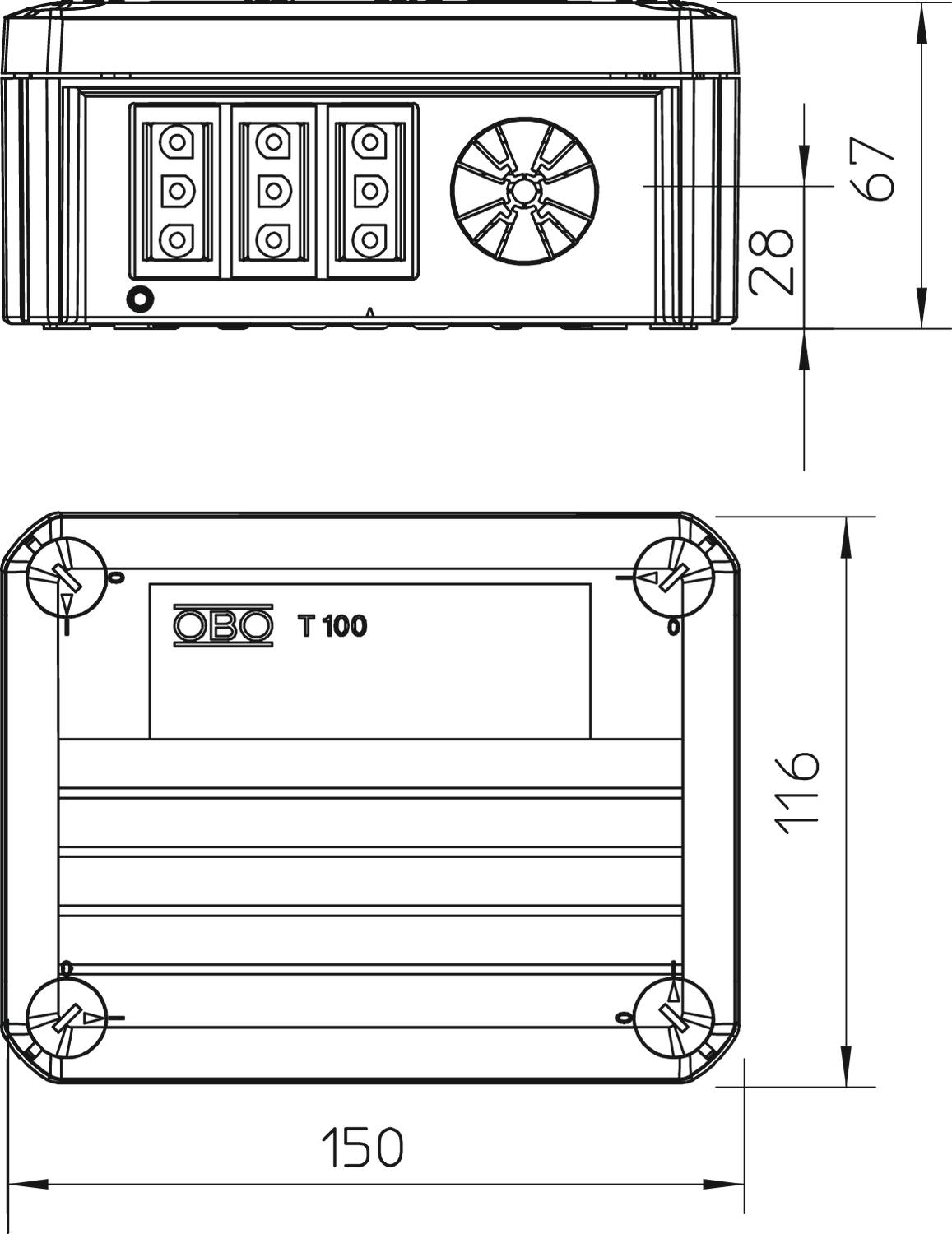 Kabeldoos wieland 3z3p 150x116x67 polypr li.grijs RAL 7035 OBO