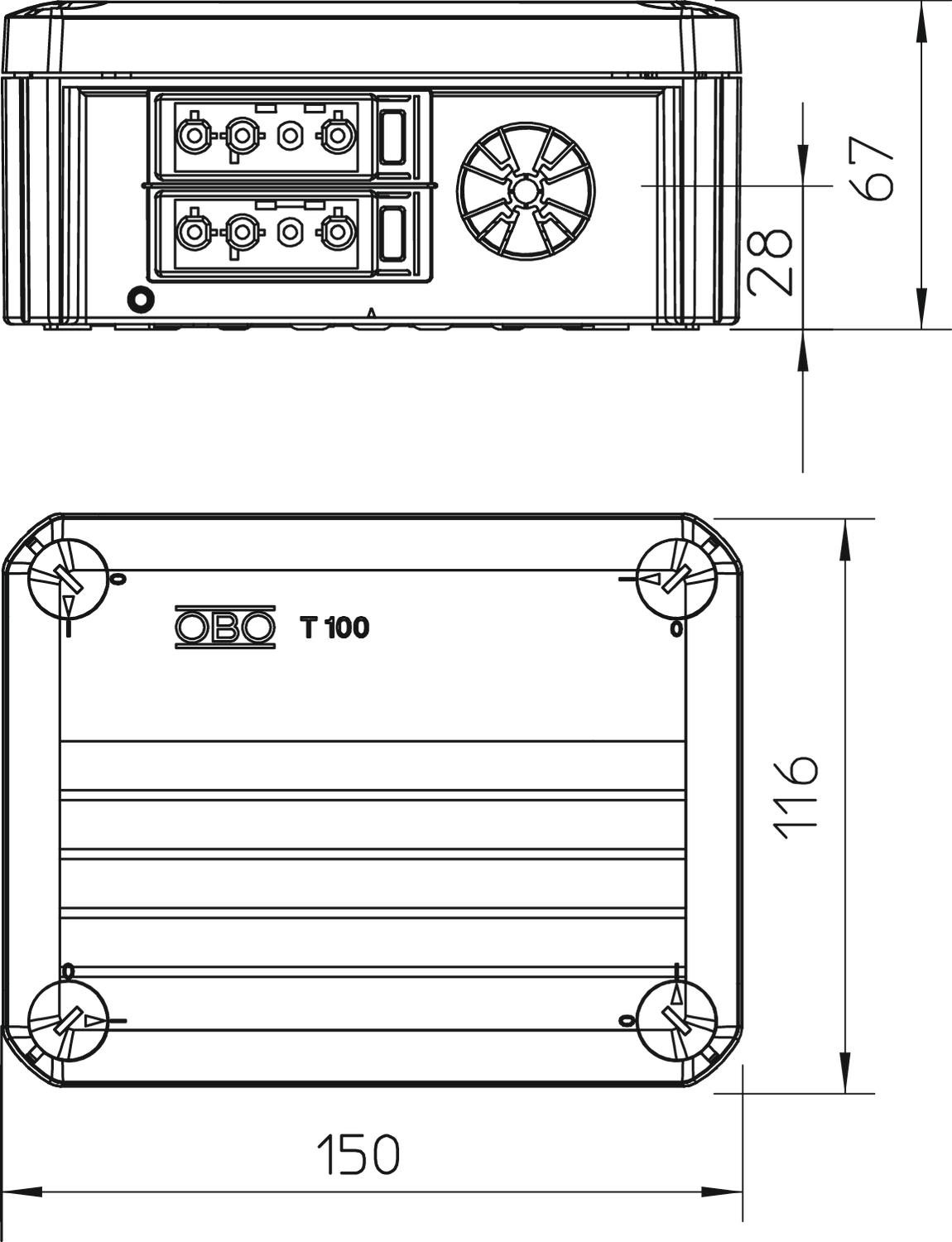 Kabeldoos wieland 2z4p 150x116x67 polypr li.grijs RAL 7035 OBO