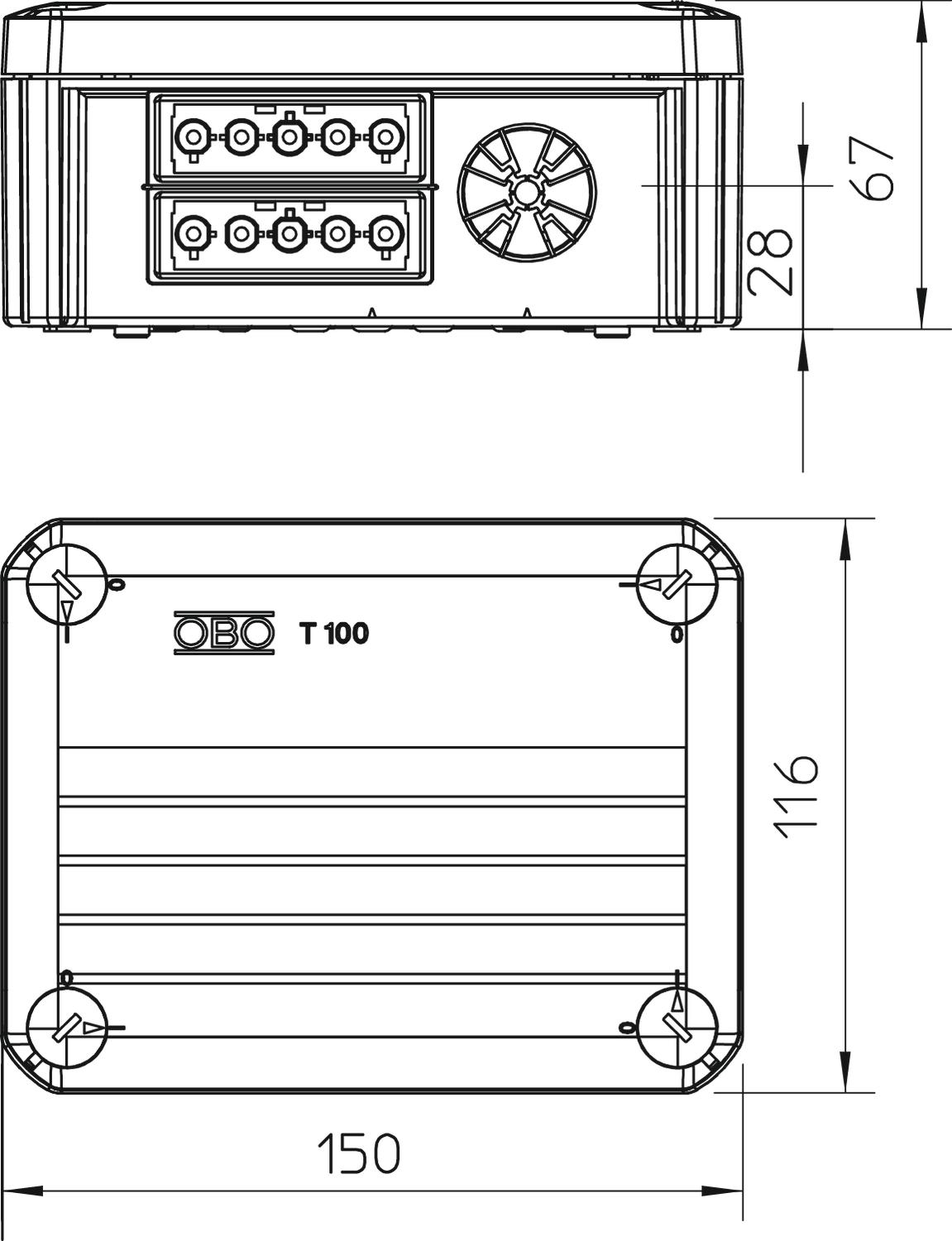 Kabeldoos wieland 2z5p 150x116x67 polypr li.grijs RAL 7035 OBO