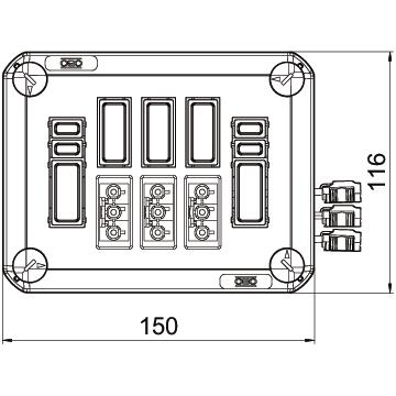 Stekerbare T100 deksel+GST18 3x3P 150x116x60 poly grafiet OBO