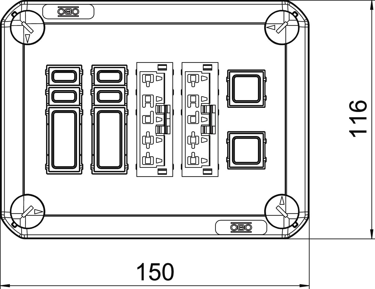 Stekerbare T100 deksel+DALI 2x5P 150x116x60 poly grafietz OBO