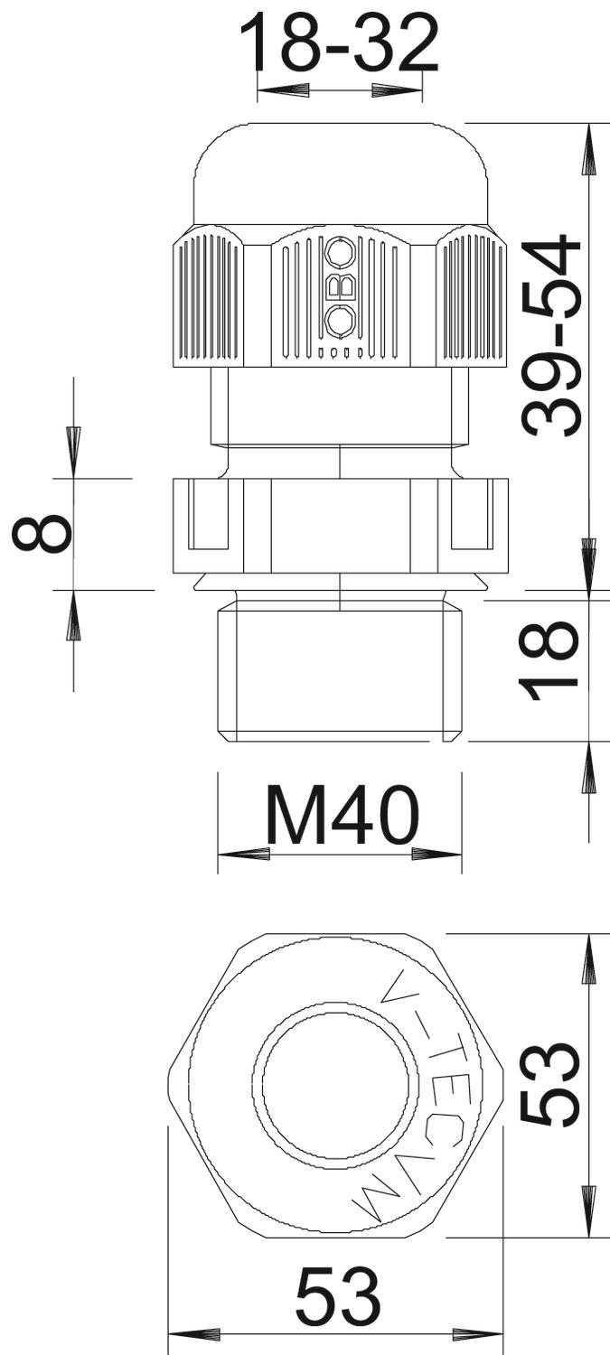 • Geschikt voor kabeldiameter: 18 - 32 mm