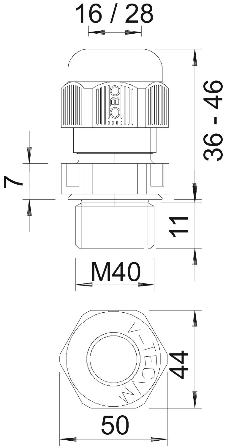 - Geschikt voor kabeldiameter: 16 - 28 mm