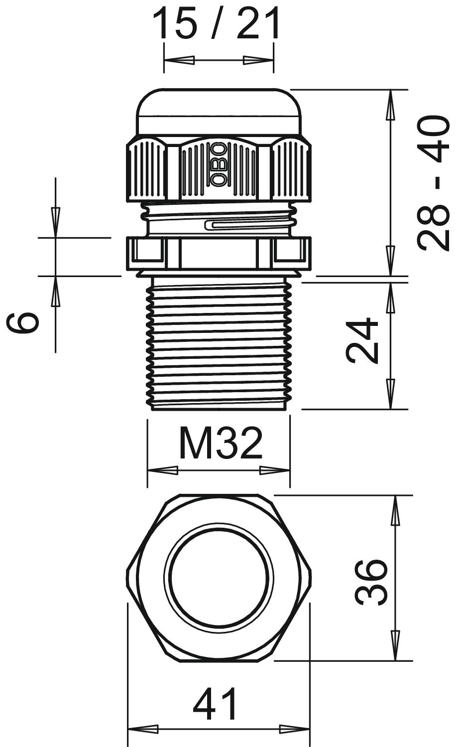 Wartel volmetrisch lang 24mm M32 Polyamide schwarz VVE=20 OBO