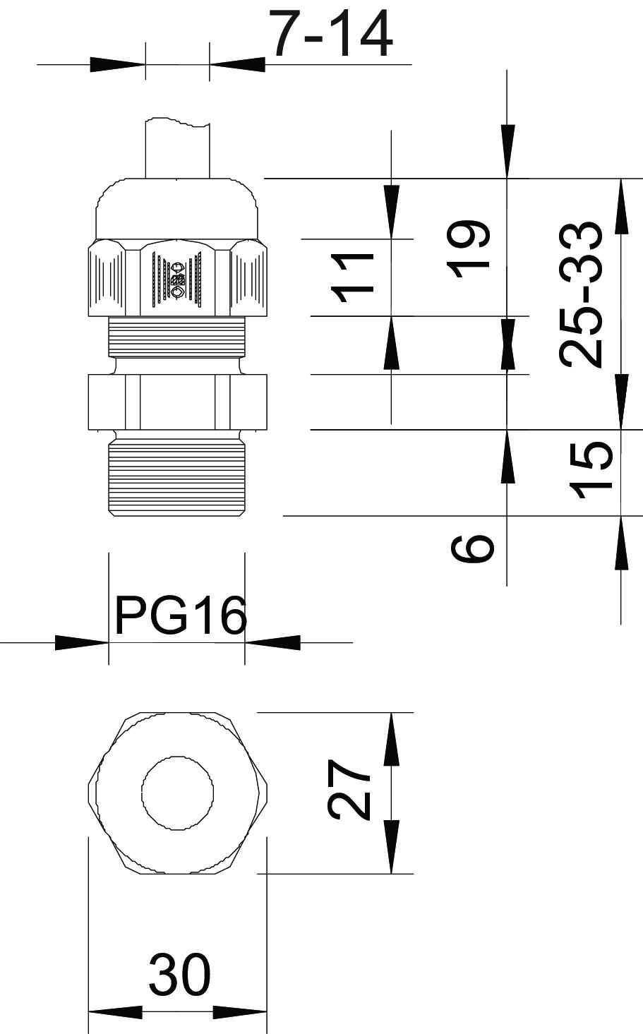 - Nom. draadmaat metrisch/Pg: 16
