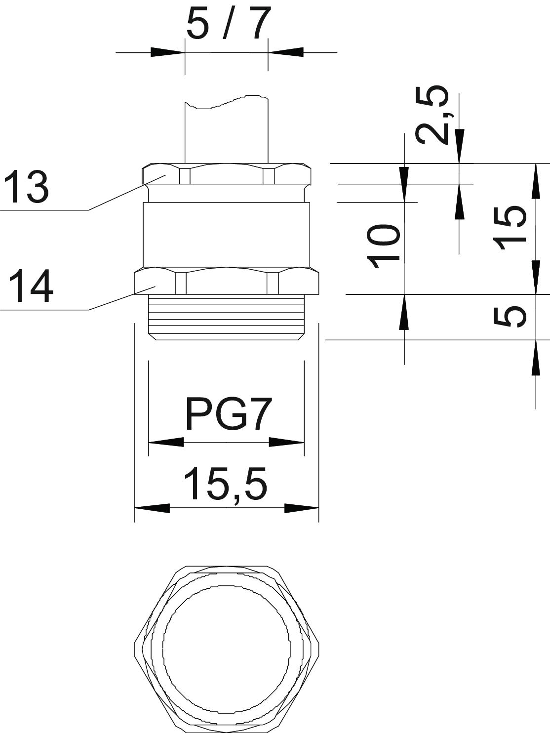 • Geschikt voor kabeldiameter: 5 - 7 mm