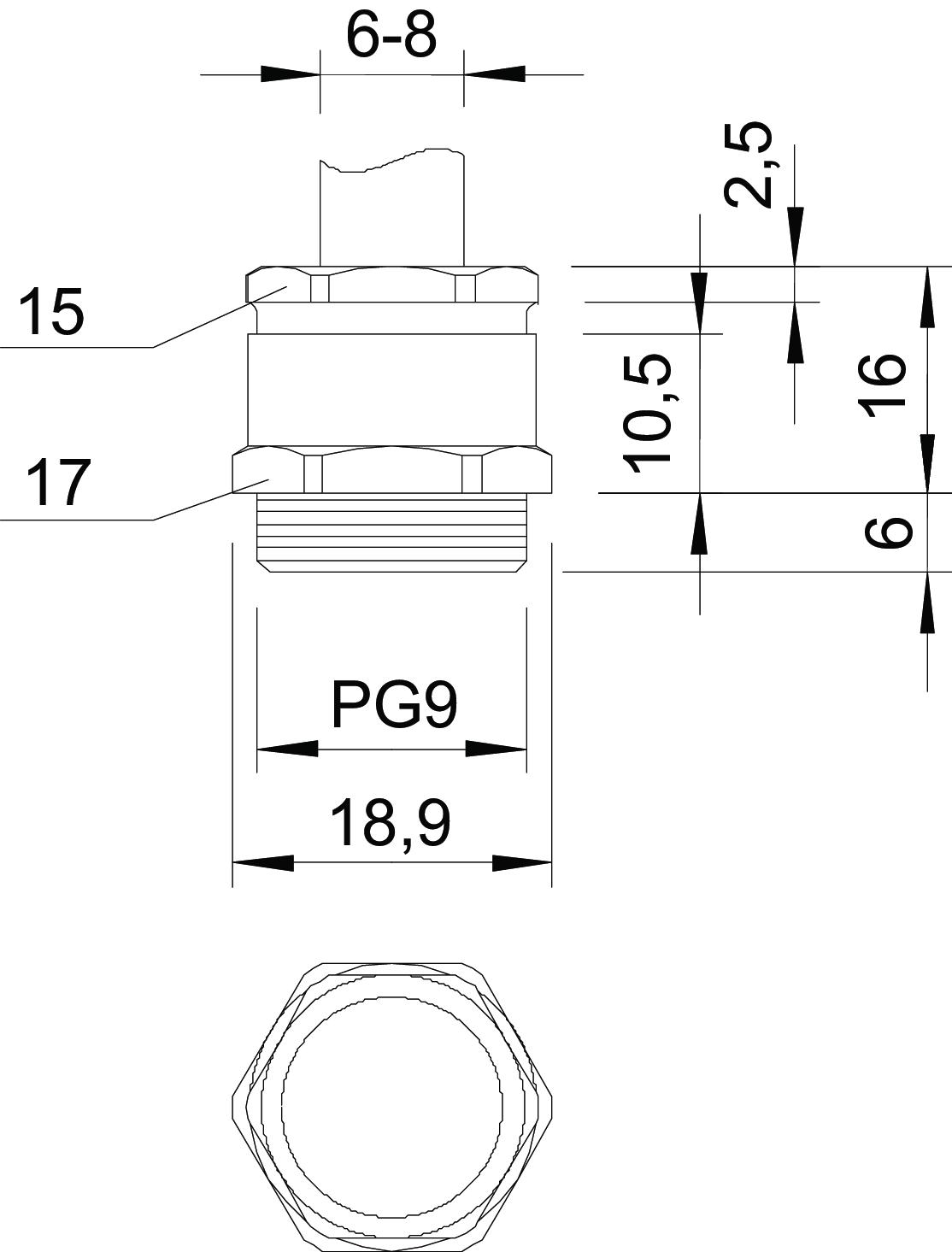 - Geschikt voor kabeldiameter: 6 - 8 mm