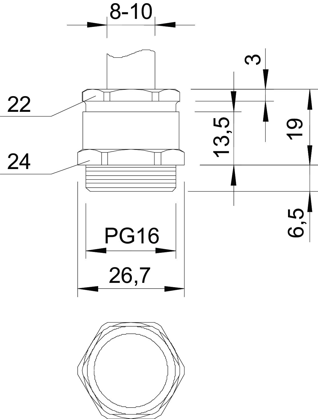 • Geschikt voor kabeldiameter: 8 - 10 mm