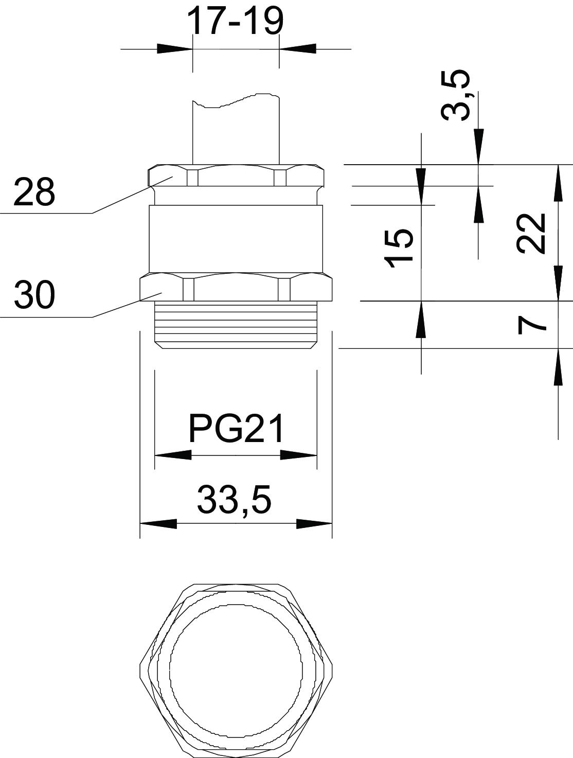 - Geschikt voor kabeldiameter: 17 - 19 mm