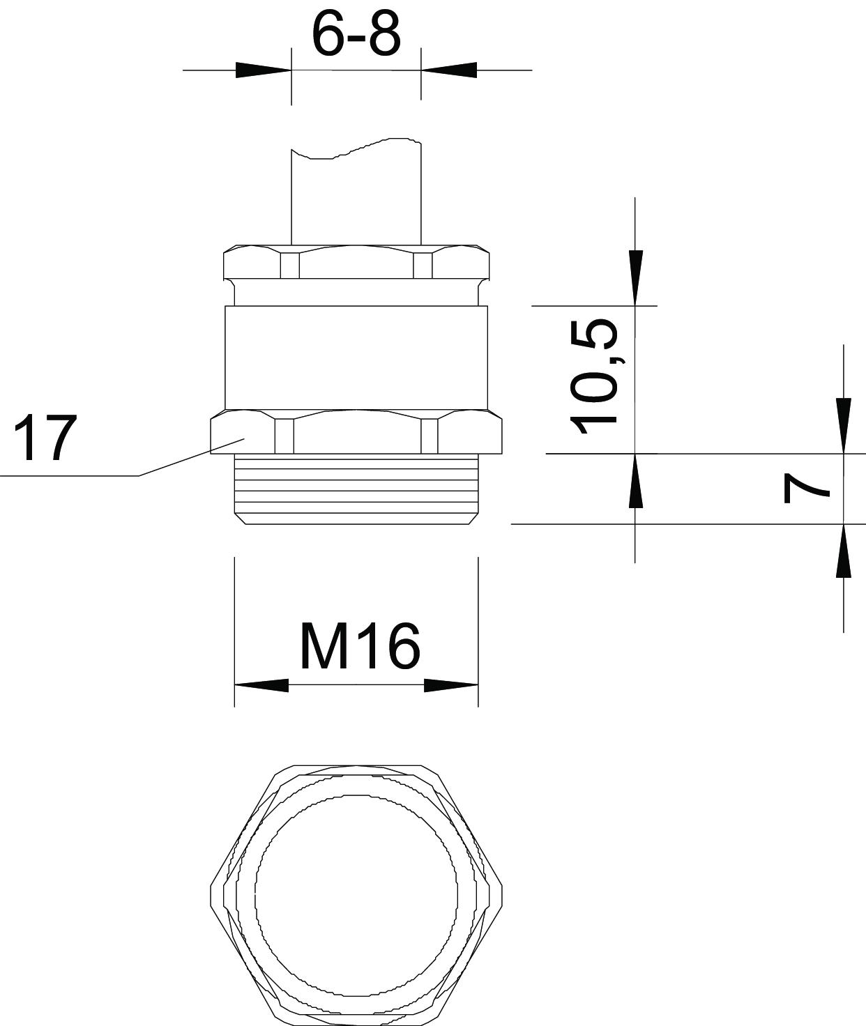 - Geschikt voor kabeldiameter: 6 - 8 mm