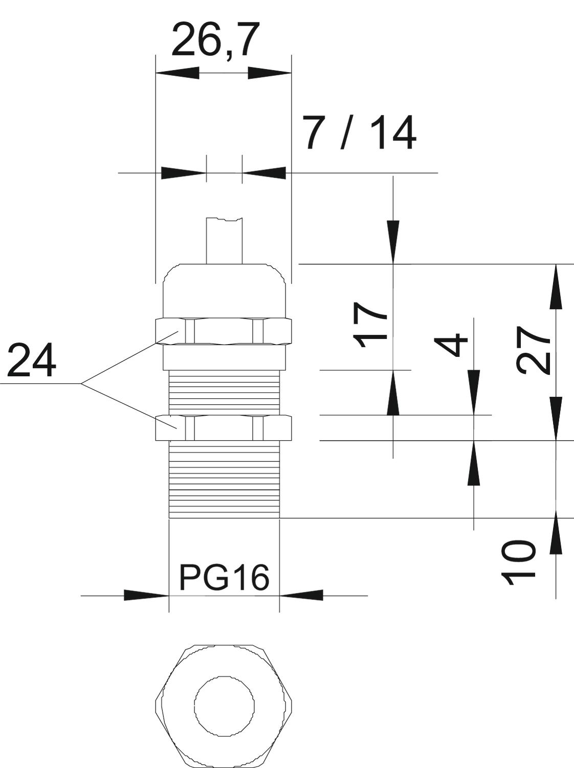 Wartel met lange tap PG16 messing vernickelt VVE=25 OBO