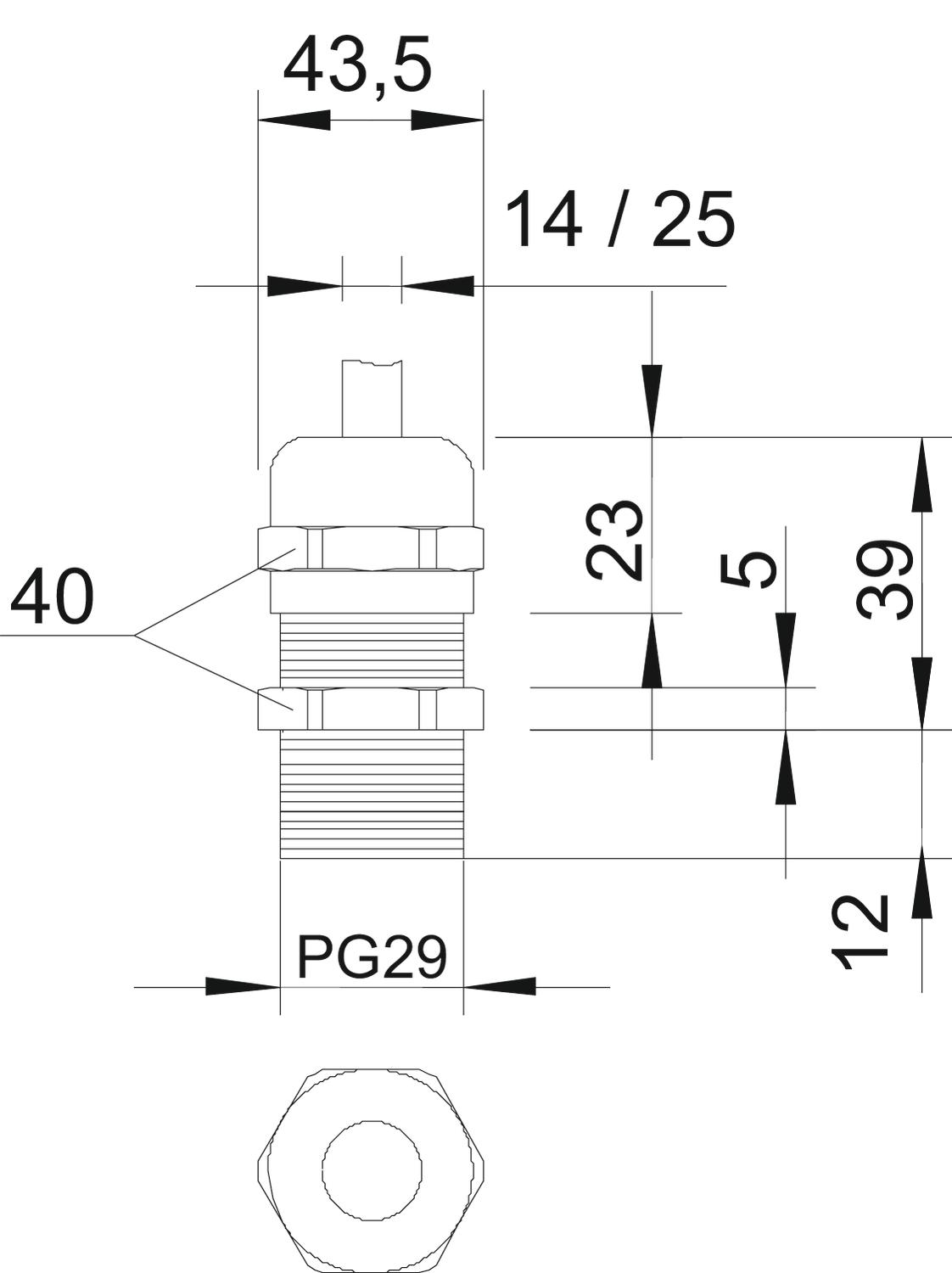 • Nom. draadmaat metrisch/Pg: 29
