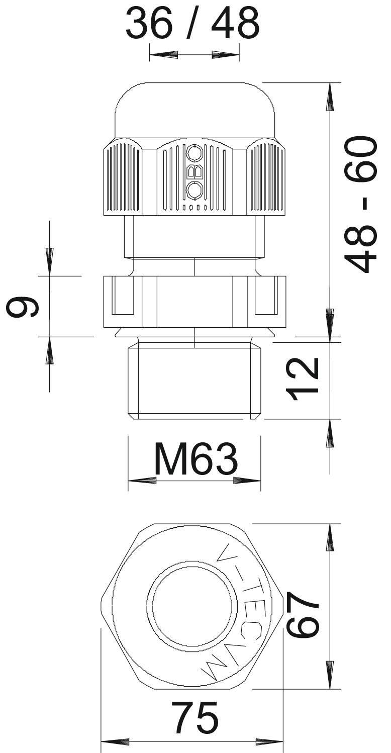 - Geschikt voor kabeldiameter: 32 - 42 mm