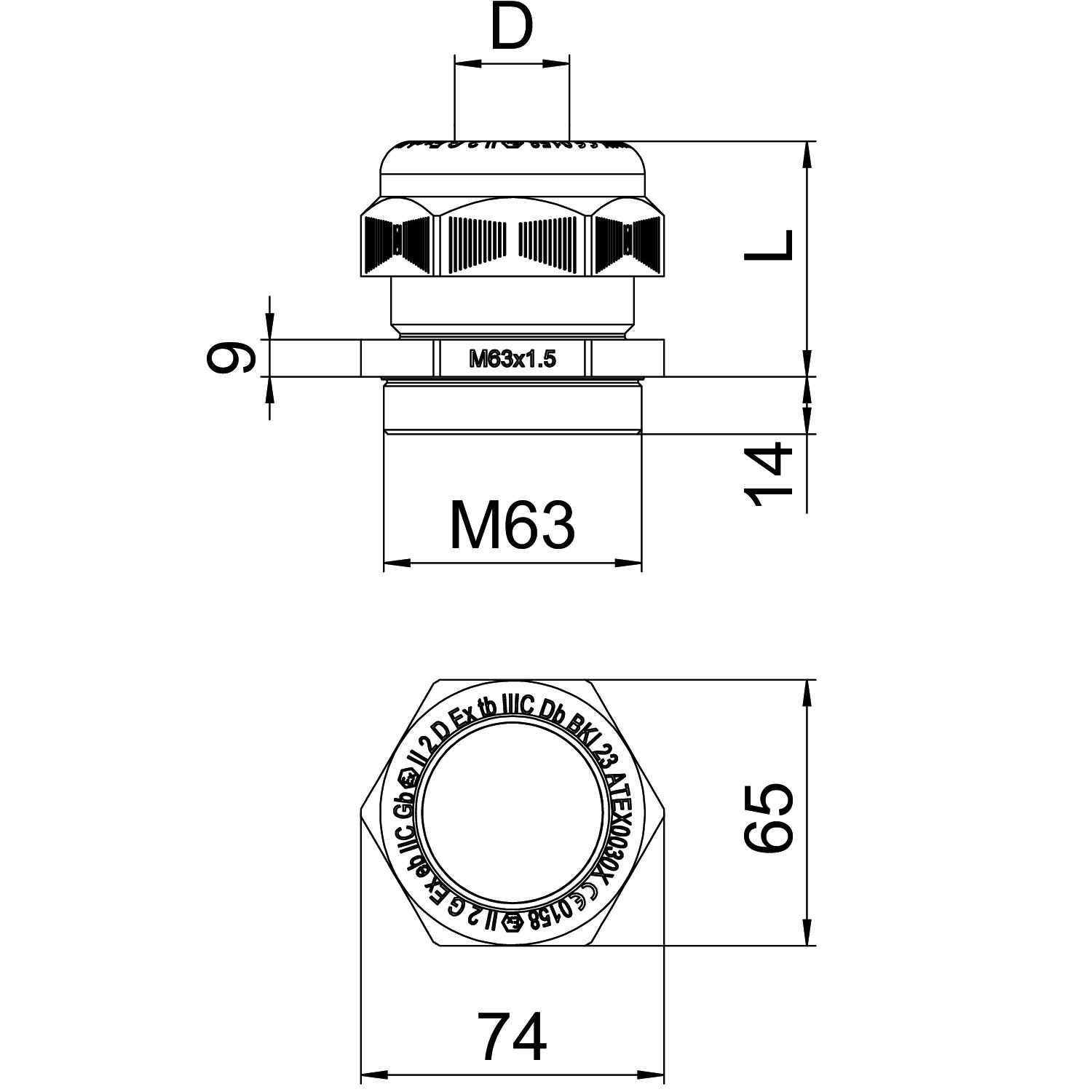 Wartel EX trekontlasing IP68 M63 polyamide zwart VVE=5 OBO