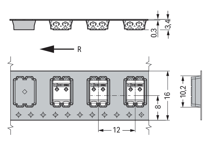 SMD-printklem 0,5mm2 Rastermaat 3mm wit 302/998-403 VVE=1750 Wago