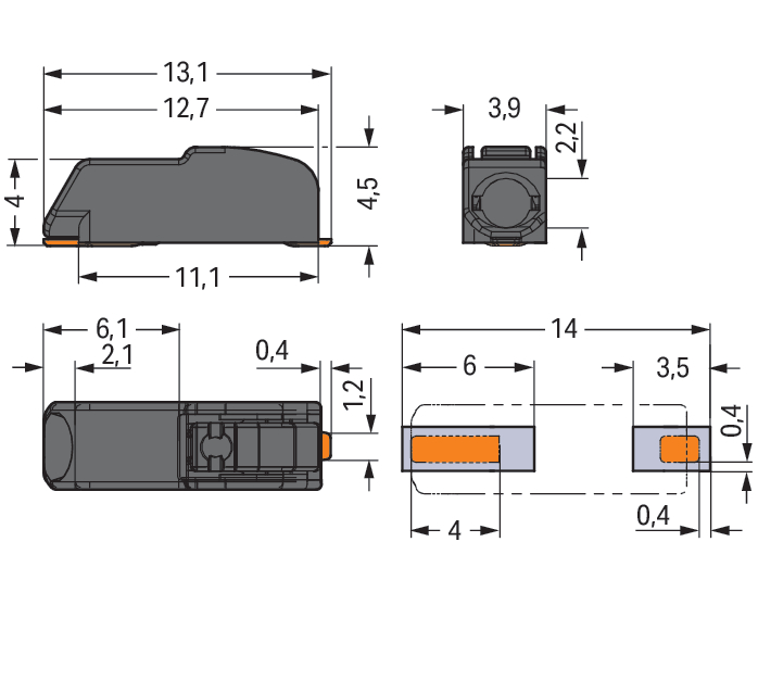 • Aansluitbare geleiderdoorsnede eendraads: 0,2 - 0,75 mm²