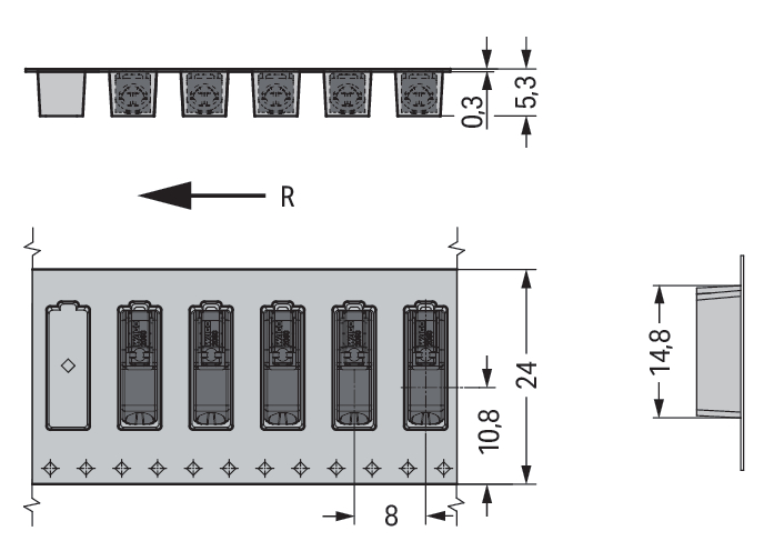 • Aansluitbare geleiderdoorsnede fijndraads met adereindhuls: 0,25 - 0,34 mm²