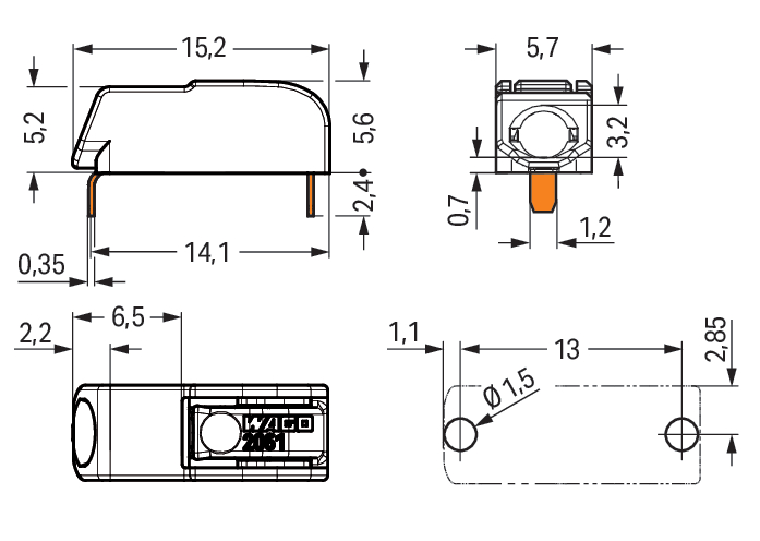 THR-printklem Drukknop 1,5 mm2 wit 2061-1601/998-404 VVE=640 Wago