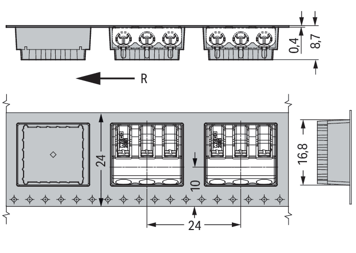 - Aansluitbare geleiderdoorsnede eendraads: 0,5 - 1,5 mm²