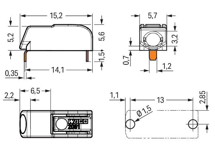 THR-printklem Drukknop 1,5 mm2 wit 2061-1641/998-404 VVE=640 Wago