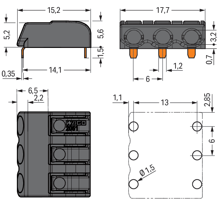THR-printklem Druk 1,5 mm2 zwart 2061-1663/998-404 VVE=320 Wago