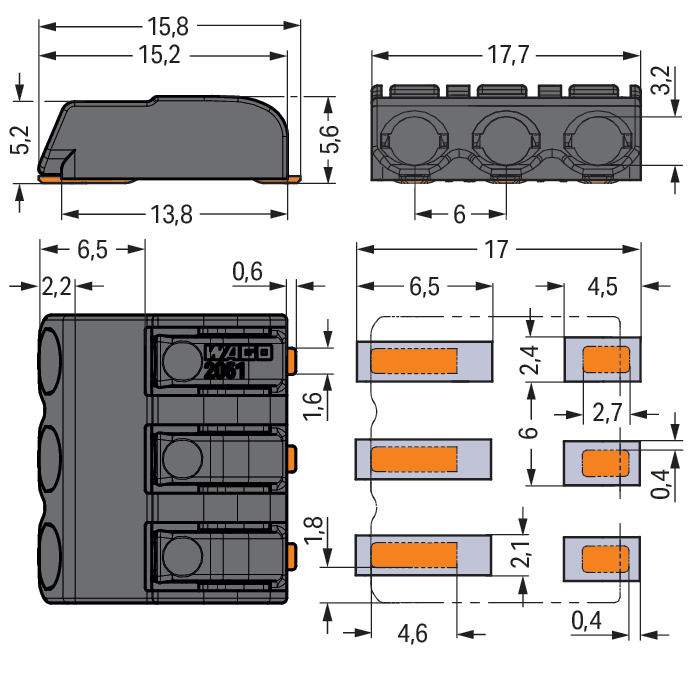 SMD-printklem Druk 1,5 mm2 zwart 2061-623/998-404 VVE=450 Wago