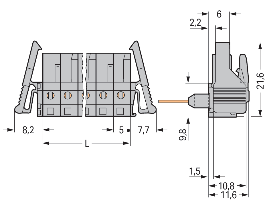 FE steker rijgklem 0,6x1mm HA 232-235/005-000/039-000 VVE=50 Wago