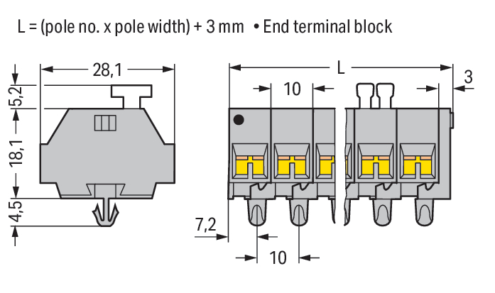 4-draads klemmenstrook 1 zijde knop 261-252/332-000 VVE=100 Wago