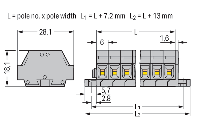 2-draads klemmenstrook z.drukknop+bev.flens 261-422 VVE=100 Wago